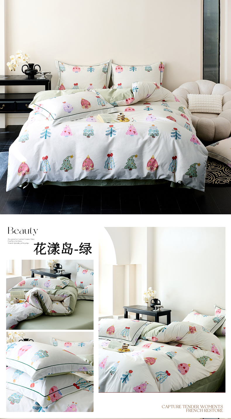 由丽家纺 2026新款柔棉印花四件套系列 莫妮卡-绿