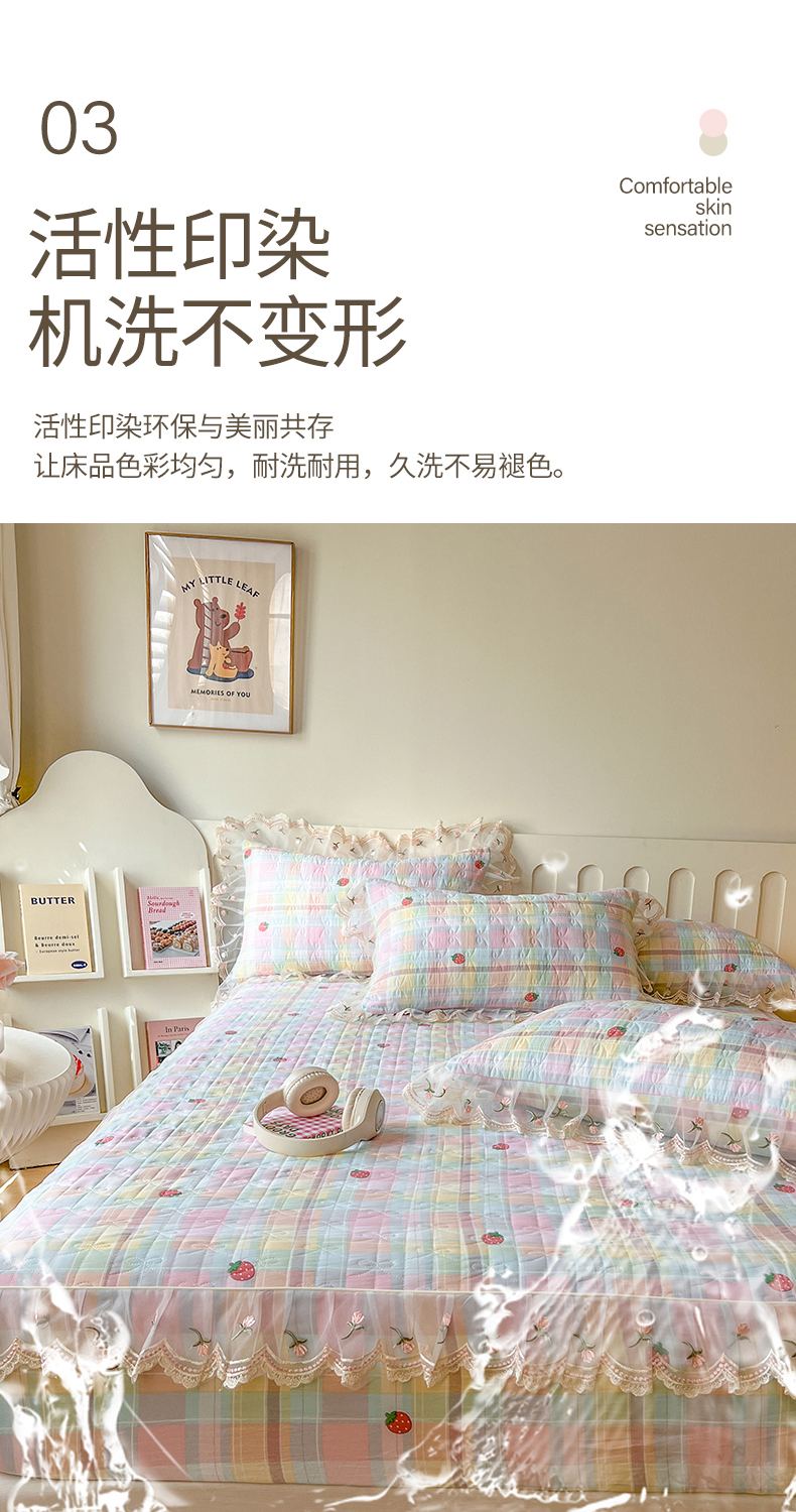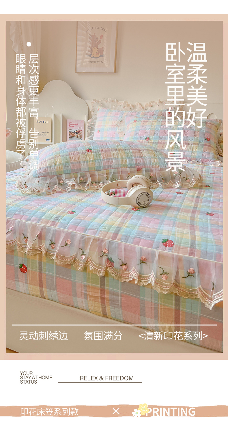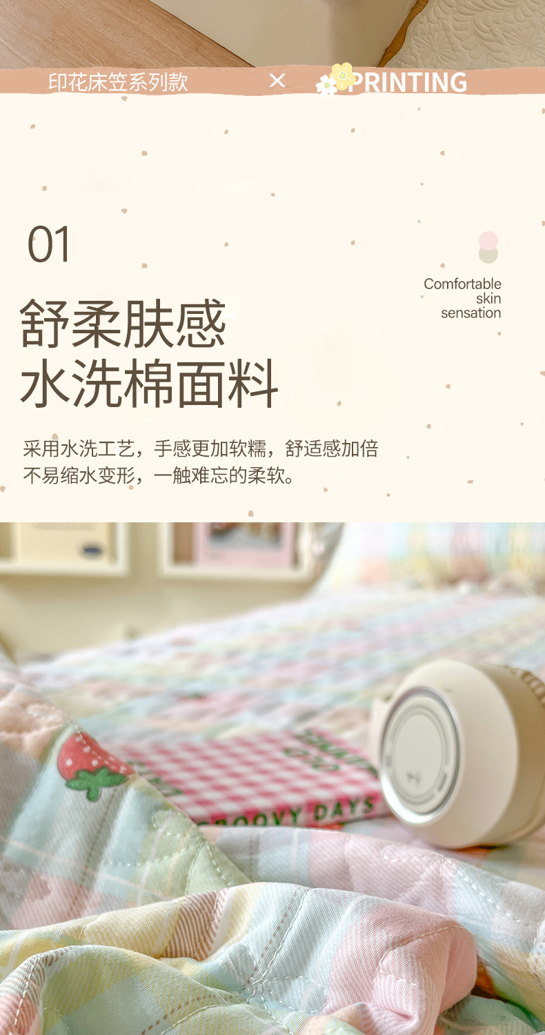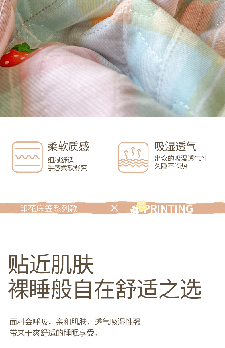 • 91家纺网 家纺一手货源 找家纺 网红馆(ck家纺) 2026新款水洗棉印花床笠三件套 格子草莓