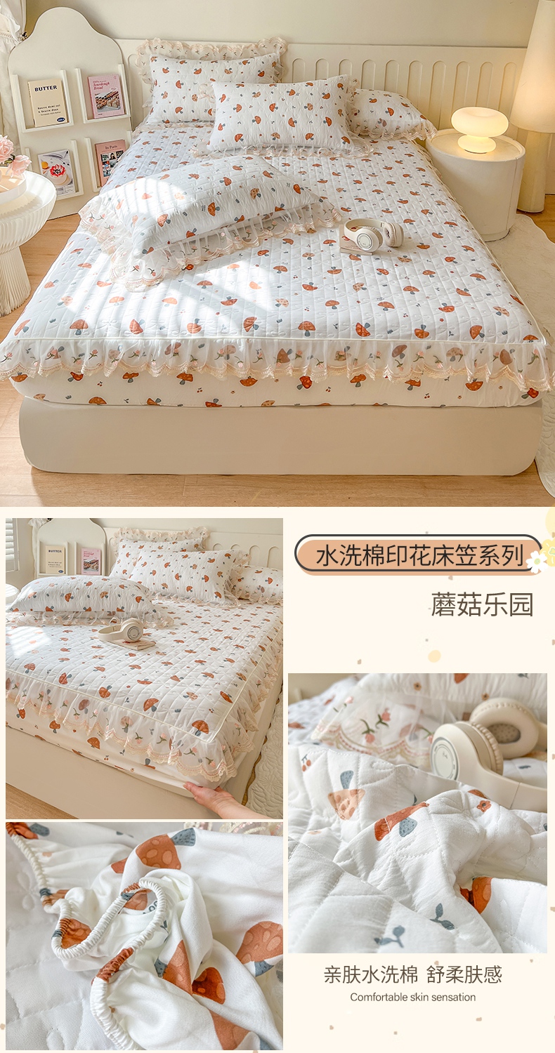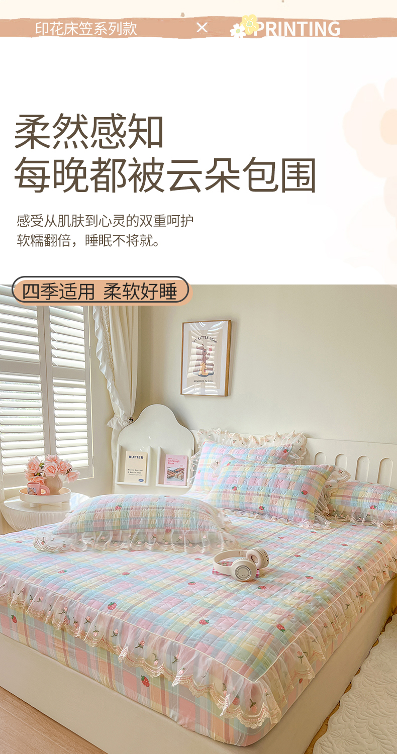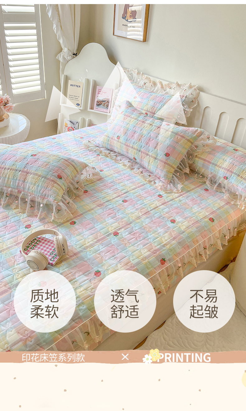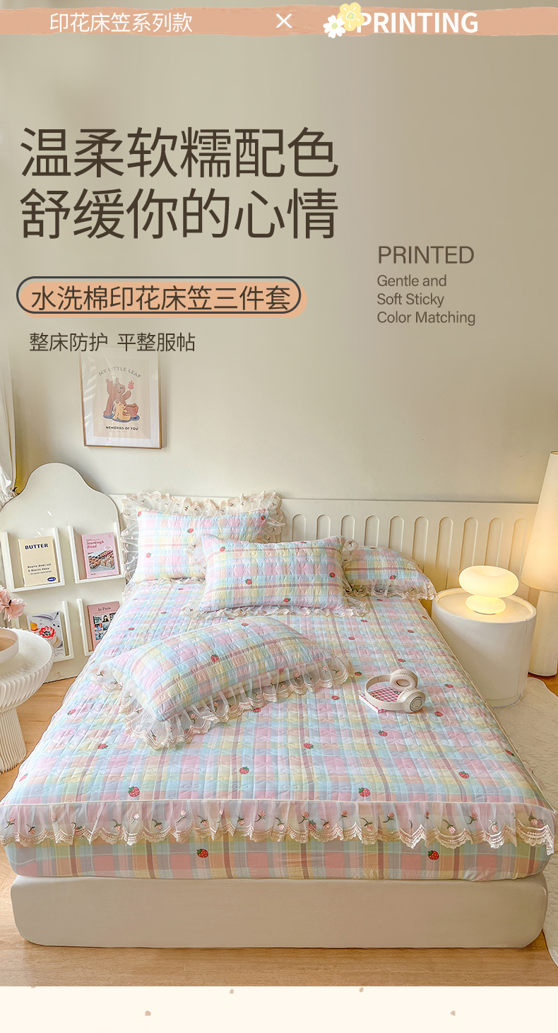 (总)网红馆(ck家纺) 2026新款泡泡棉印花床笠三件套,花儿朵朵,花莫,甜心草莓,小清新,熊宝宝,悠悠花海,紫色恋人