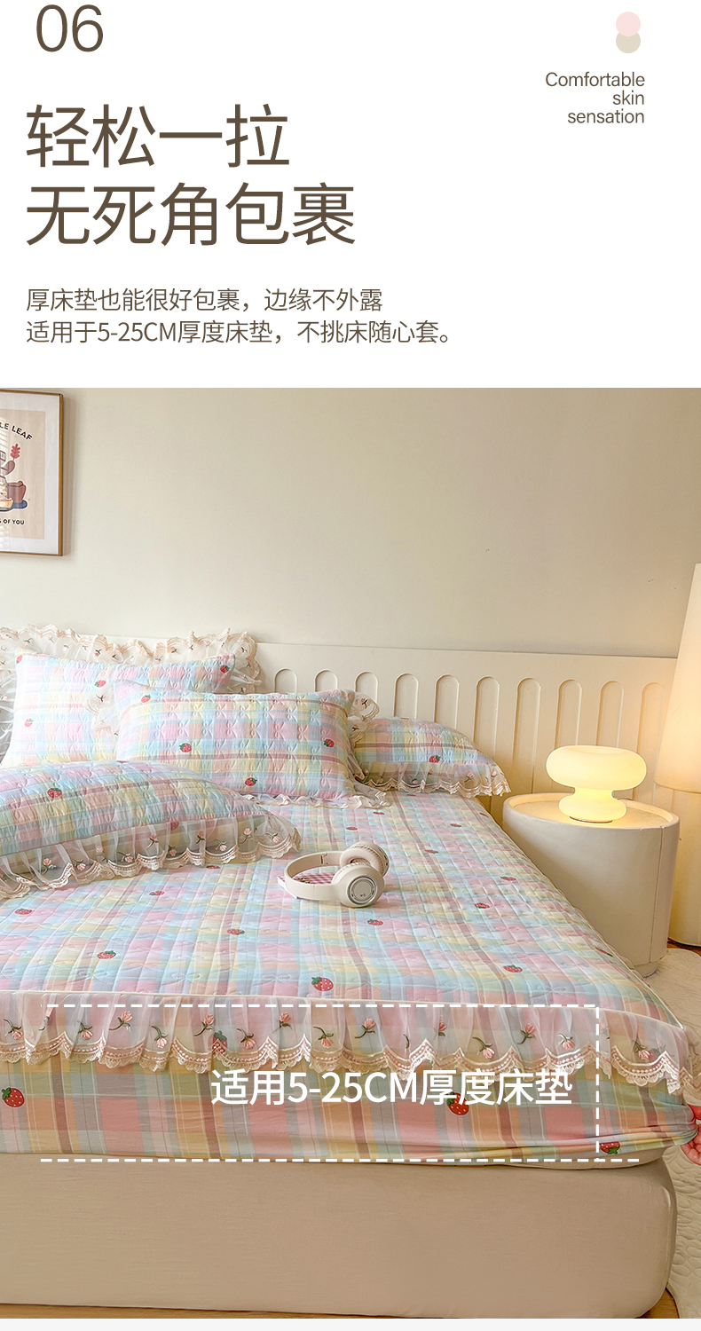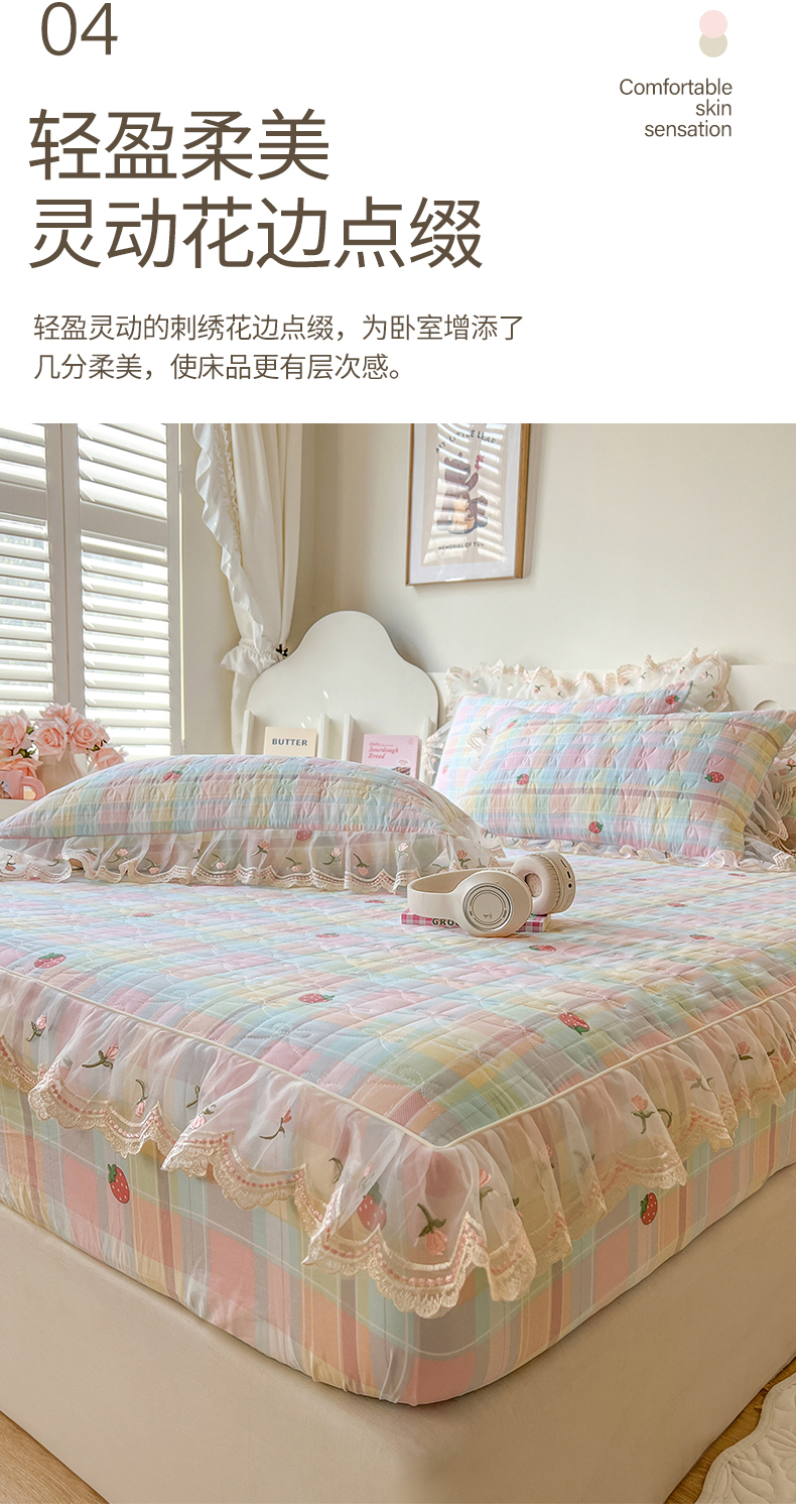 当前位置: 91家纺网 > 商品网购 > 床上用品 > 床笠 > 网红馆(ck家纺) 2026新款水洗棉印花床笠三件套 格子草莓