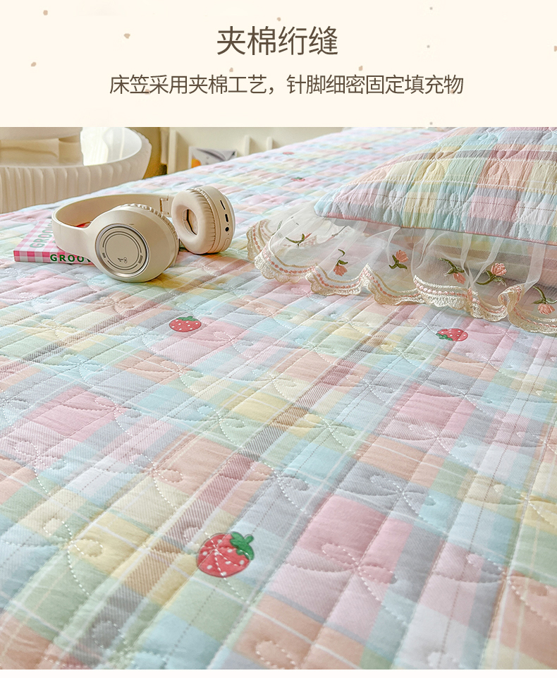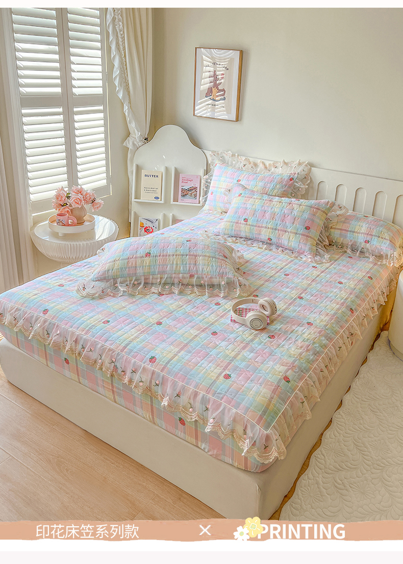网红馆(ck家纺) 2026新款水洗棉印花床笠三件套 格子草莓