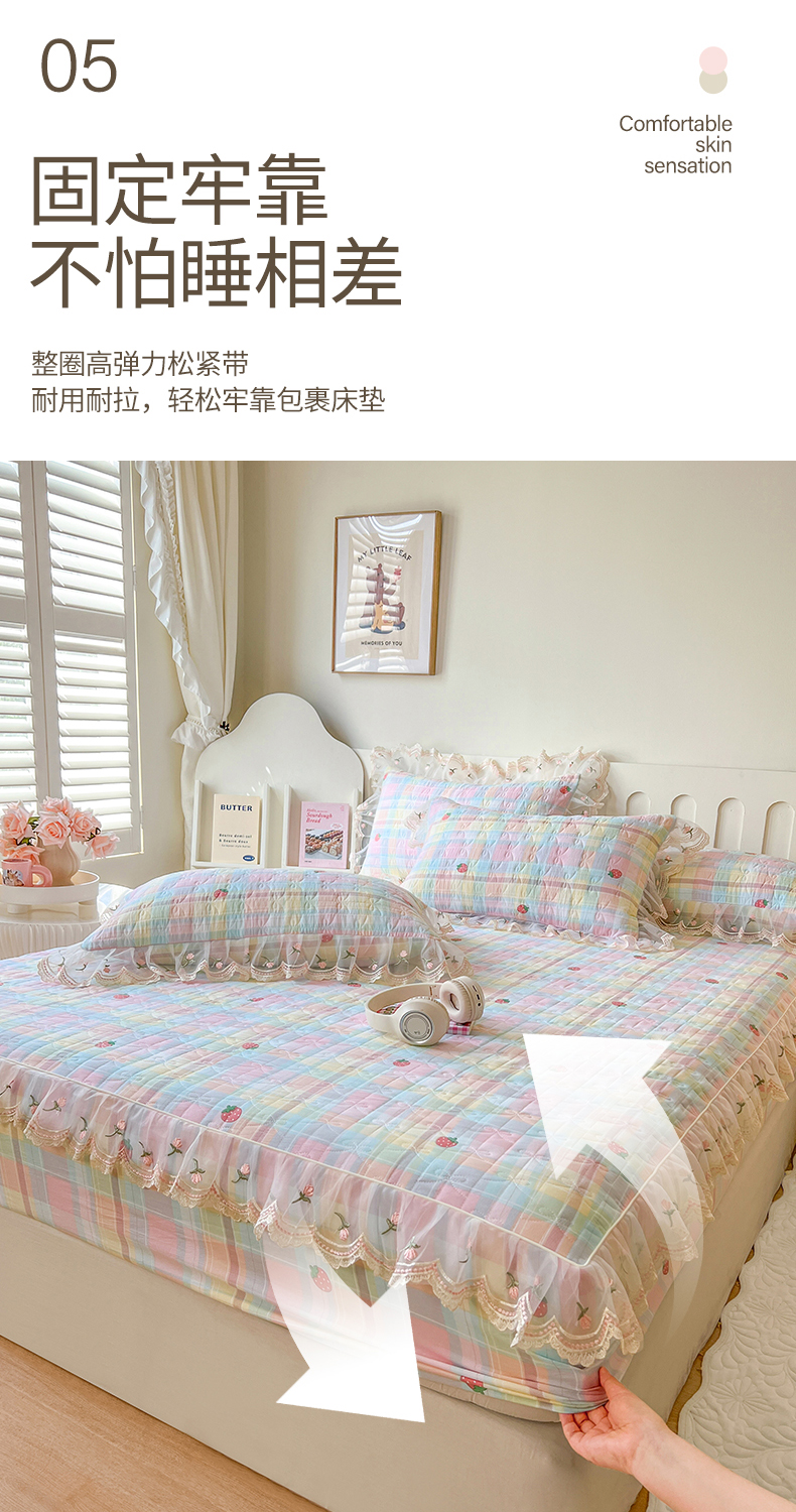 (总)网红馆(ck家纺) 2026新款全棉蕾丝花边床裙款床笠晨暮花间系列,绯红,粉色,麦绿,米色,浅紫,雾蓝