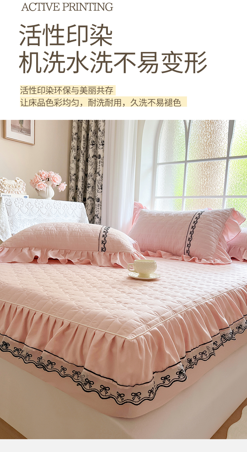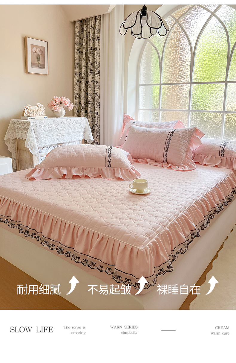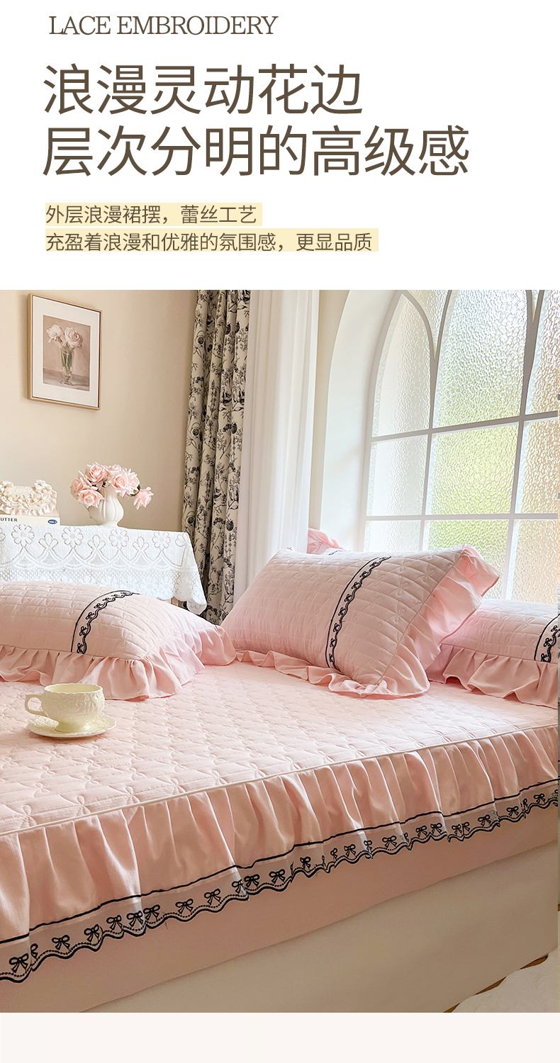 网红馆(ck家纺) 2026新款喜芙棉蕾丝夹棉蜜芙蕾床笠 樱花粉