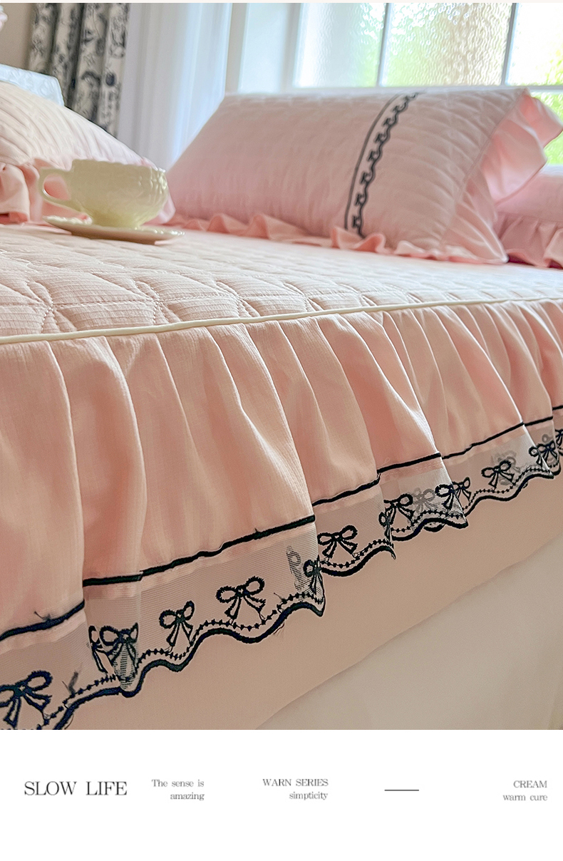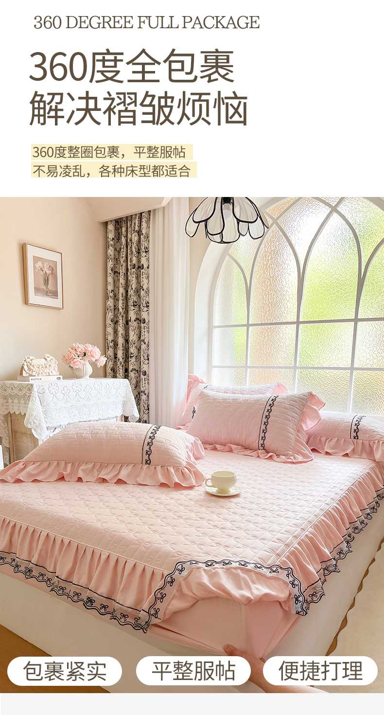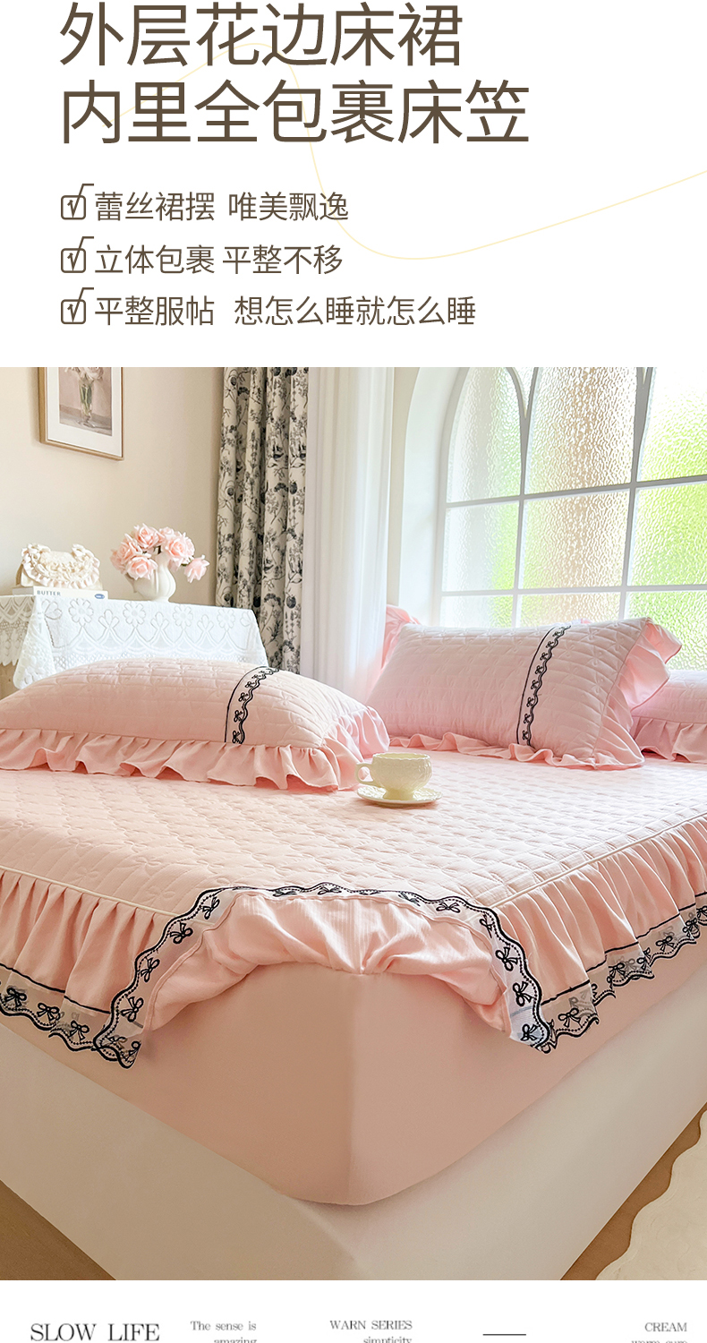 网红馆(ck家纺) 2026新款喜芙棉蕾丝夹棉蜜芙蕾床笠 樱花粉