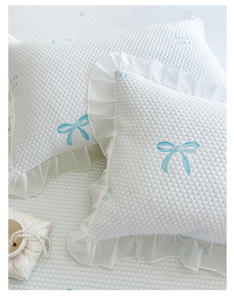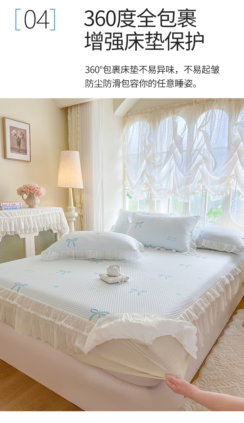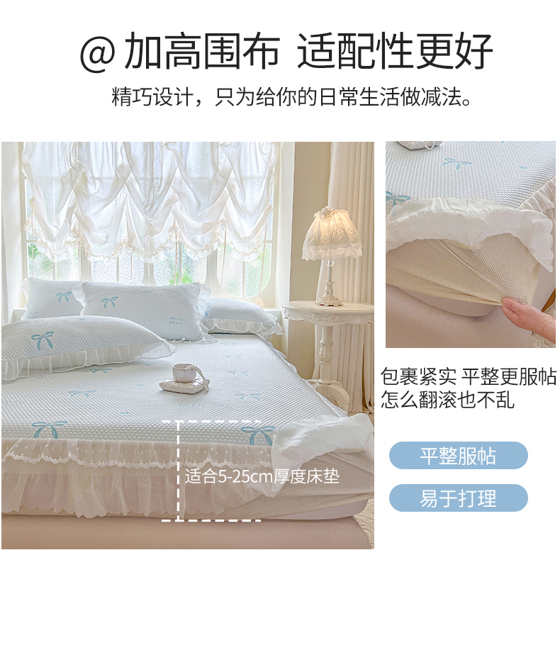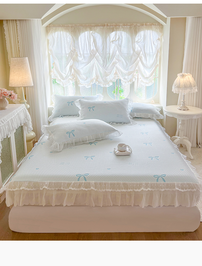 网红馆(ck家纺) 2026新款小清新床笠式床裙豆豆凉席三件套 甜心蝴蝶-天蓝