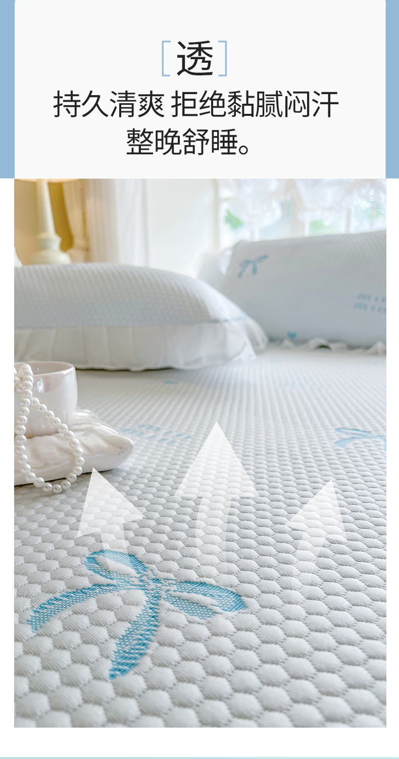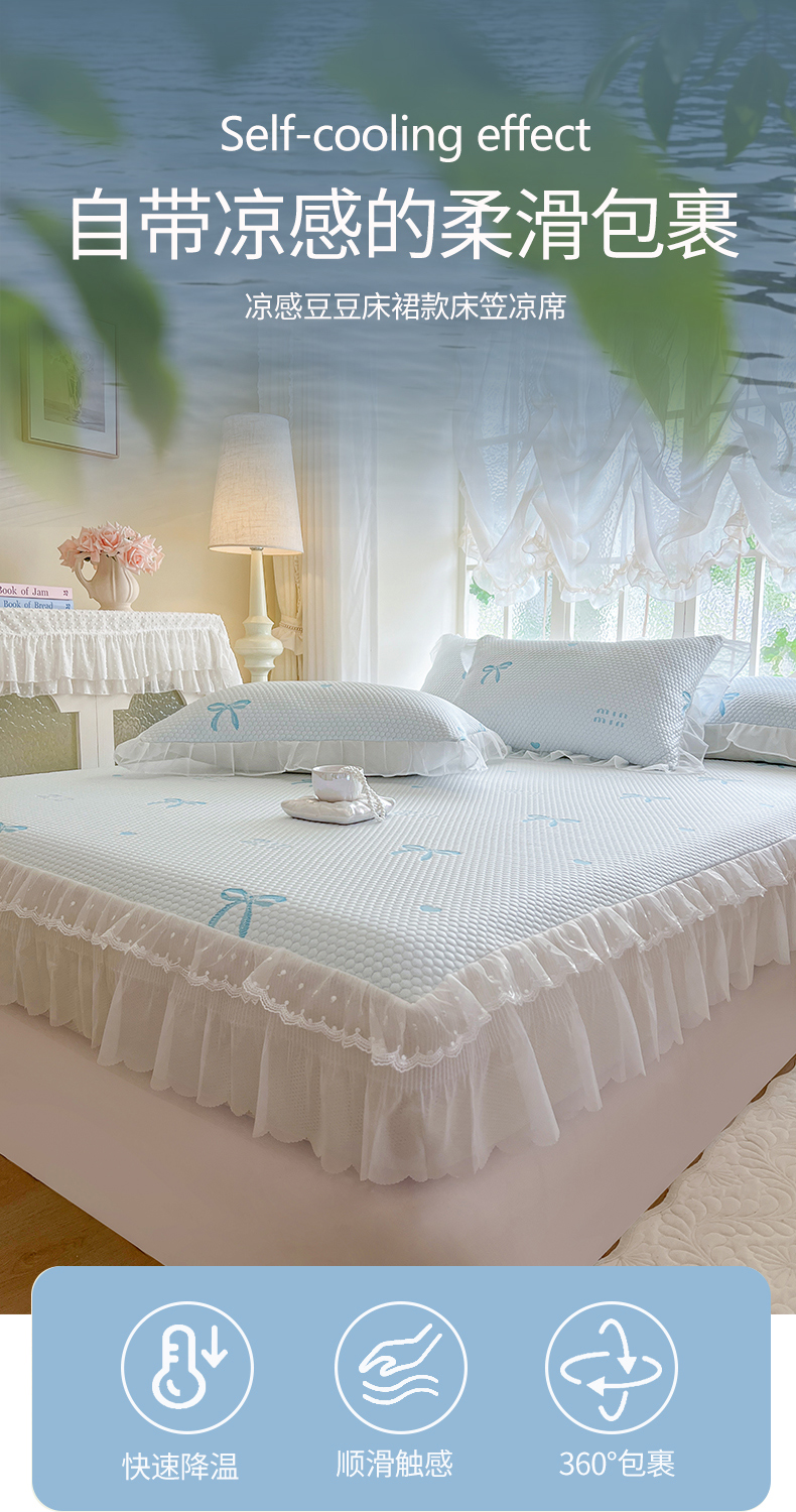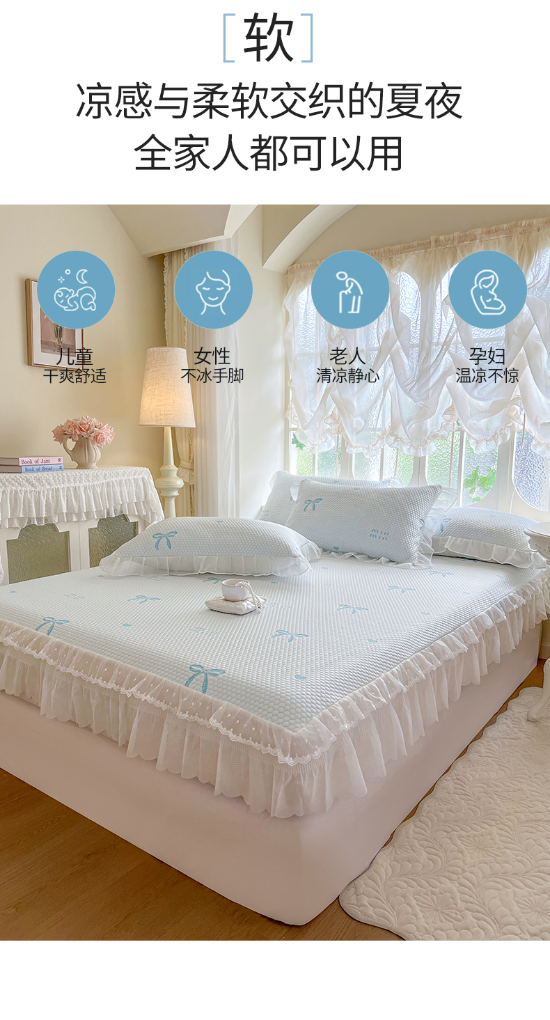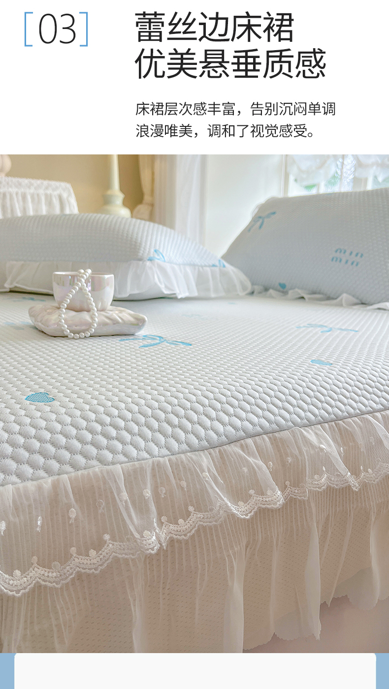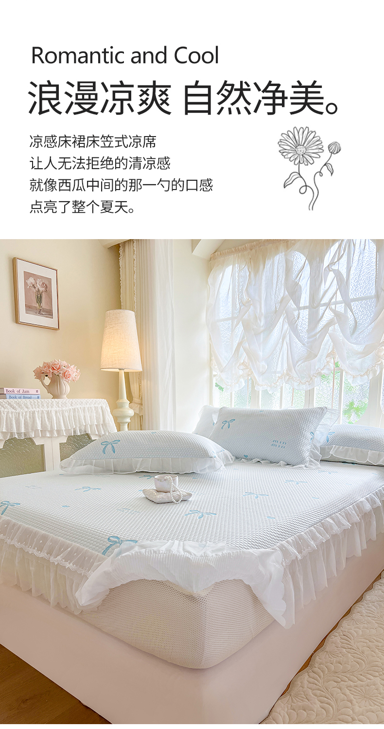 商品名称:网红馆(ck家纺) 2026新款小清新床笠式床裙豆豆凉席三件套 甜心蝴蝶-天蓝