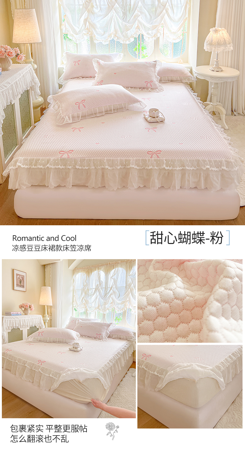 (总)网红馆(ck家纺) 2026新款小清新床笠式床裙豆豆凉席三件套,可爱巴拉-粉,可爱巴拉-天蓝,可爱巴拉-紫,甜心蝴蝶-粉,甜心蝴蝶-灰,甜心蝴蝶-天蓝,甜心蝴蝶-蔚蓝,甜心蝴蝶-紫
