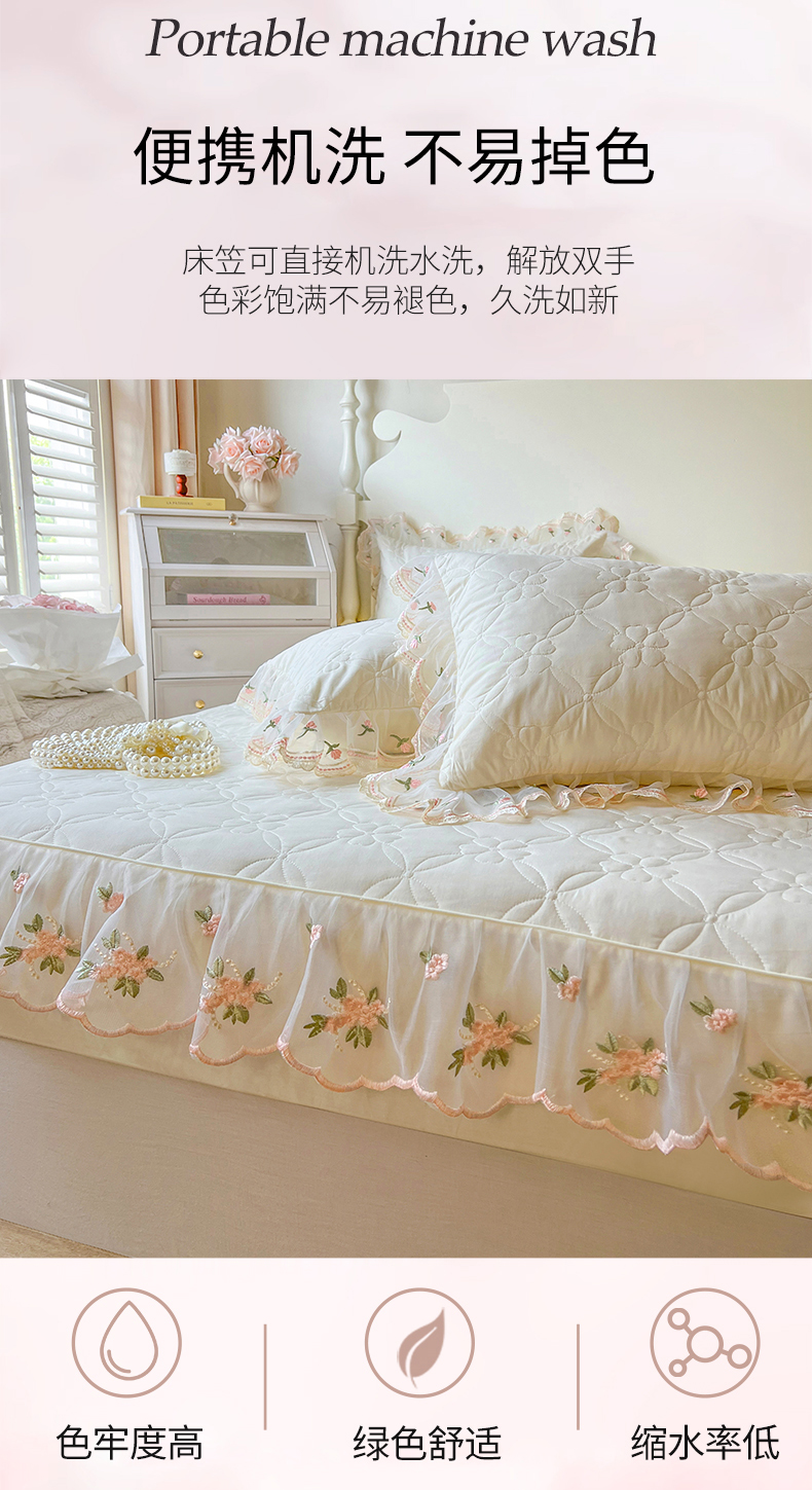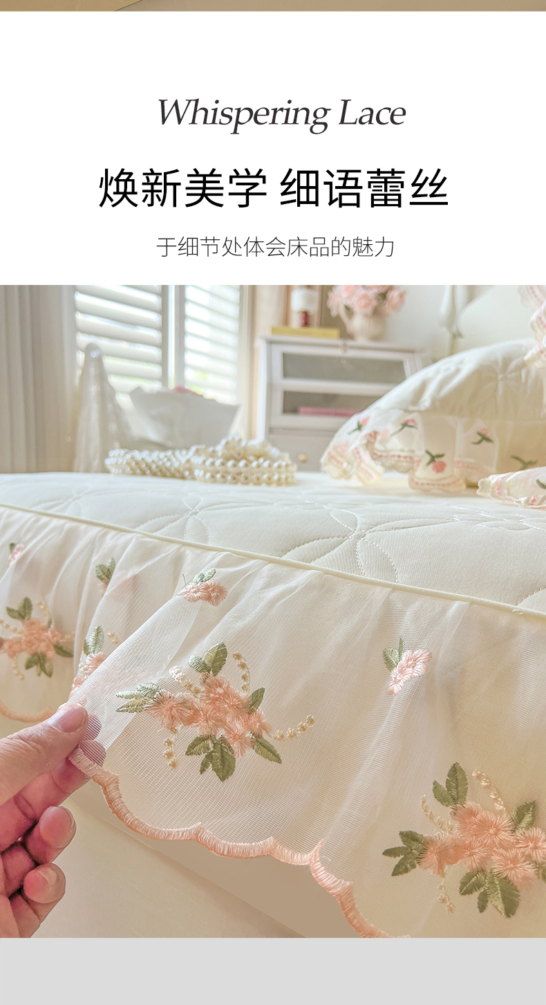 (总)网红馆(ck家纺) 2026新款全棉蕾丝花边床裙款床笠晨暮花间系列,绯红,粉色,麦绿,米色,浅紫,雾蓝