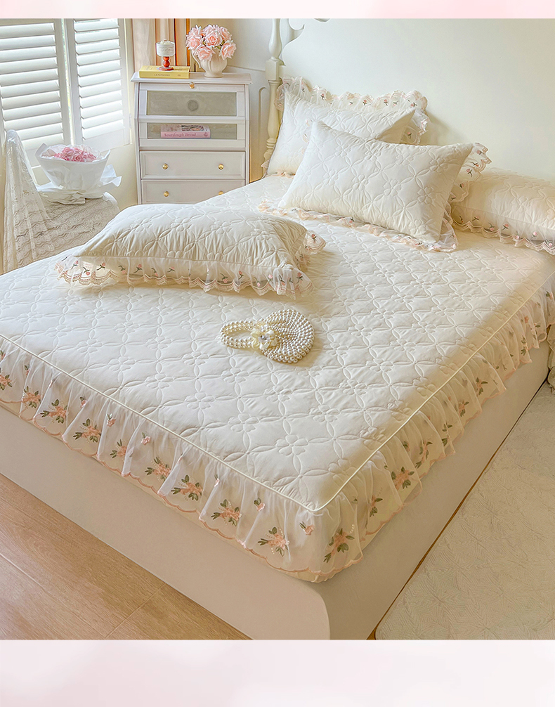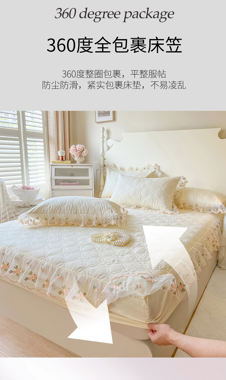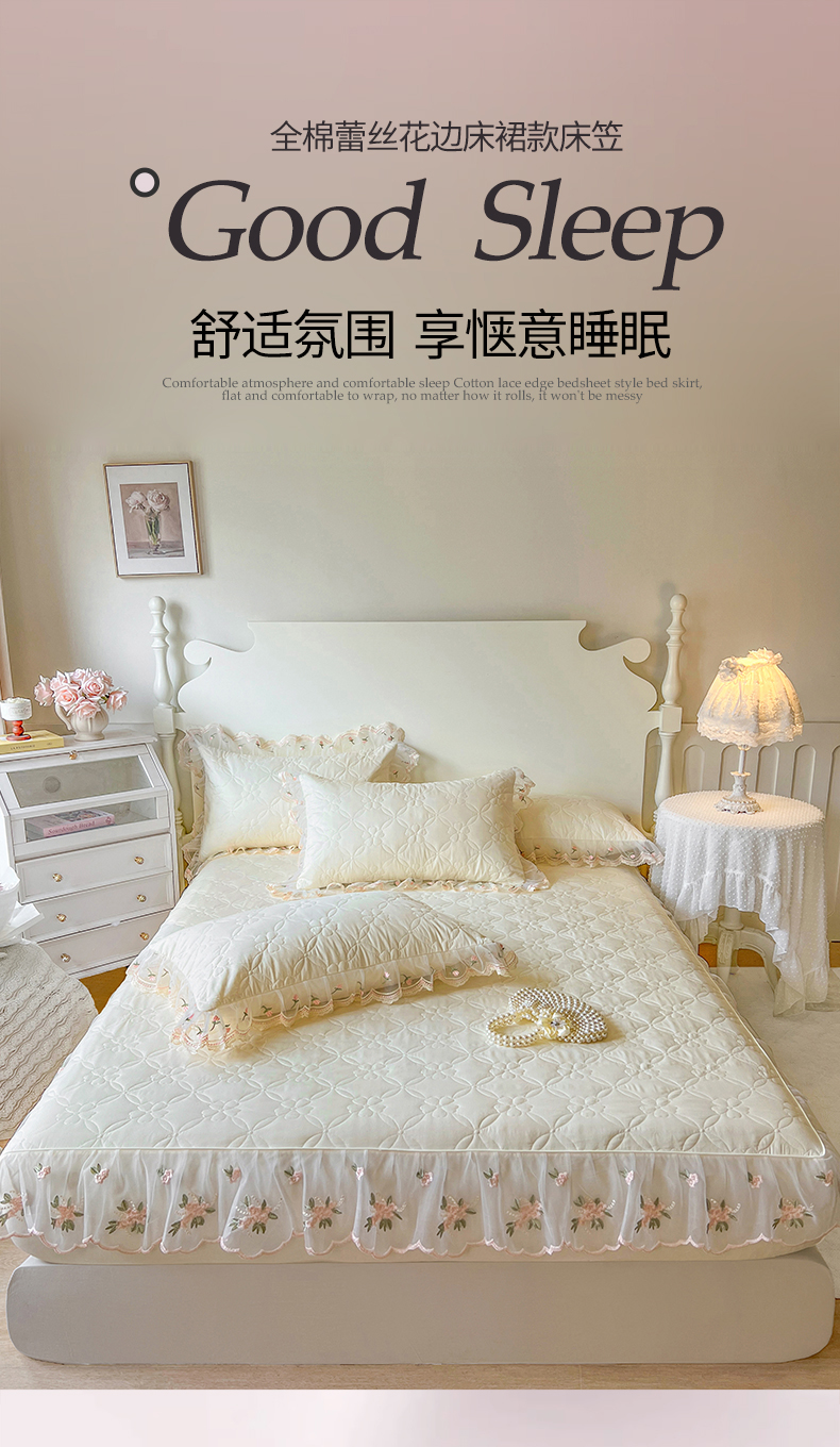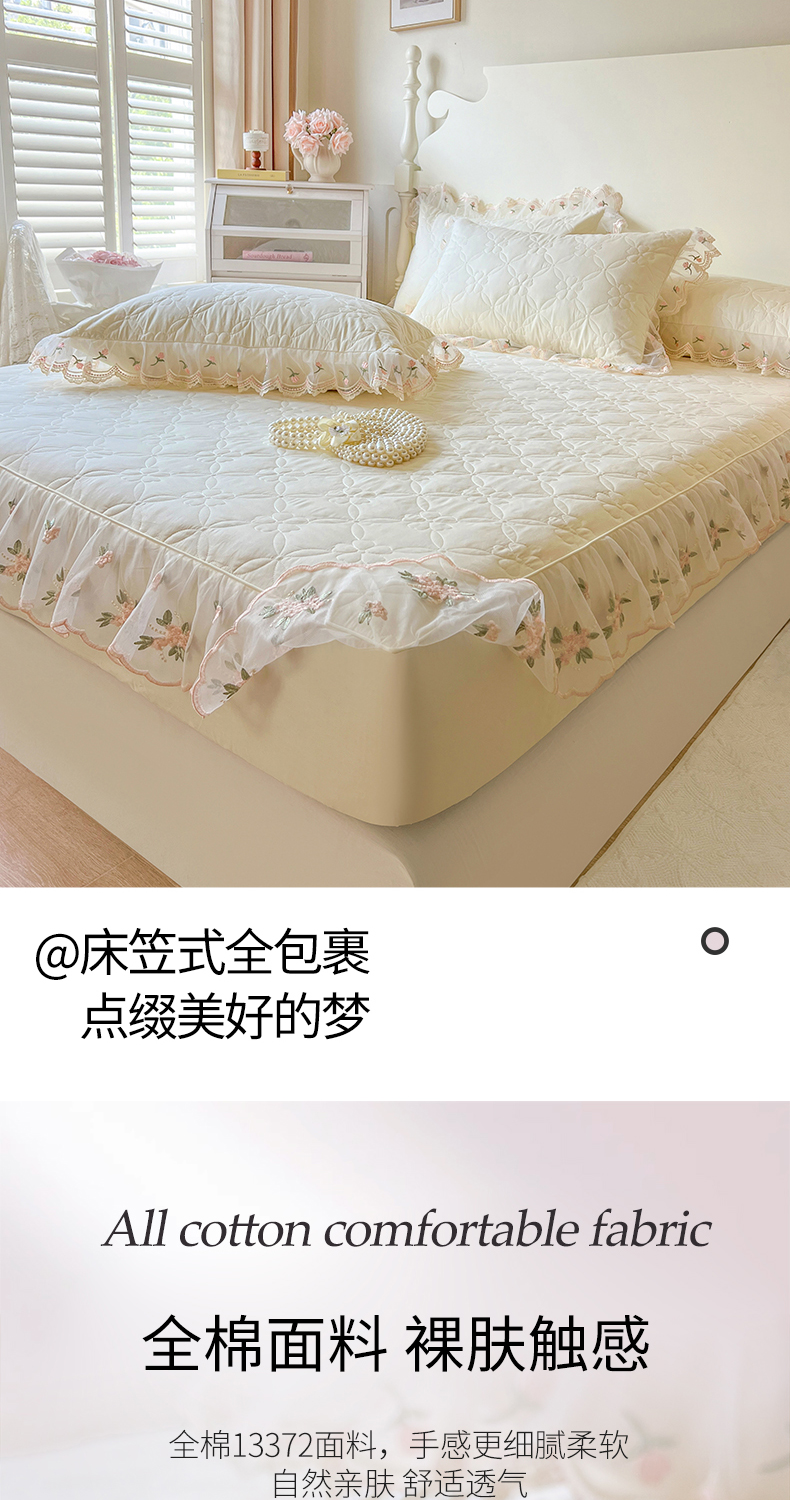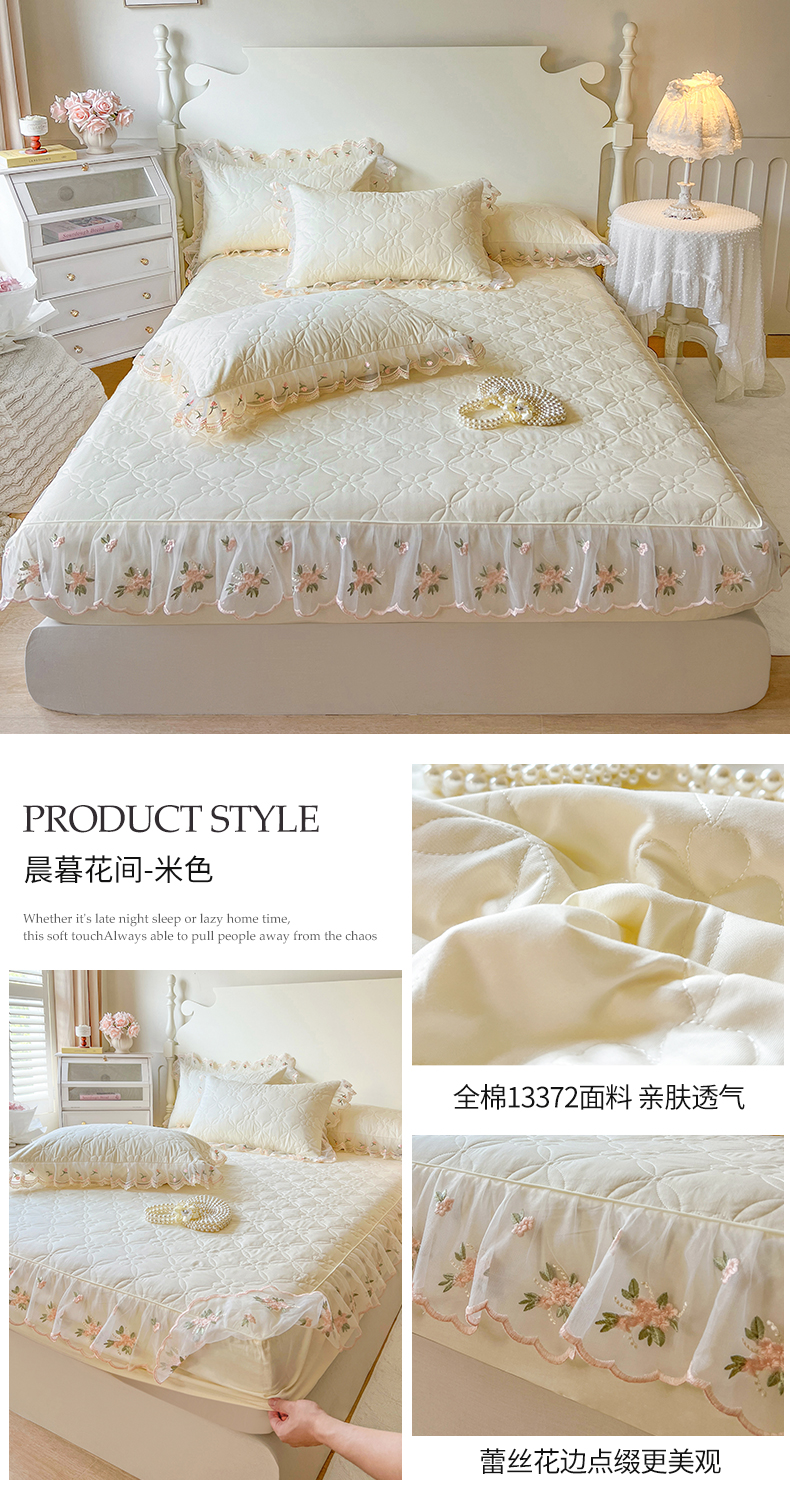 当前位置: 91家纺网 > 商品网购 > 床上用品 > 床笠 > 网红馆(ck家纺) 2026新款全棉蕾丝花边床裙款床笠晨暮花间系列 米色