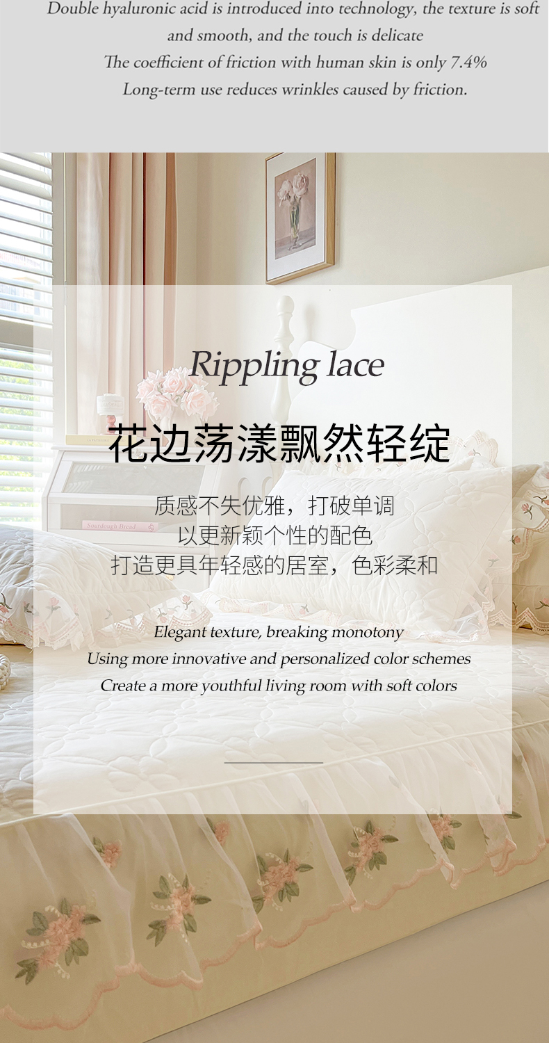 • 91家纺网 家纺一手货源 找家纺 网红馆(ck家纺) 2026新款全棉蕾丝花边床裙款床笠晨暮花间系列 米色