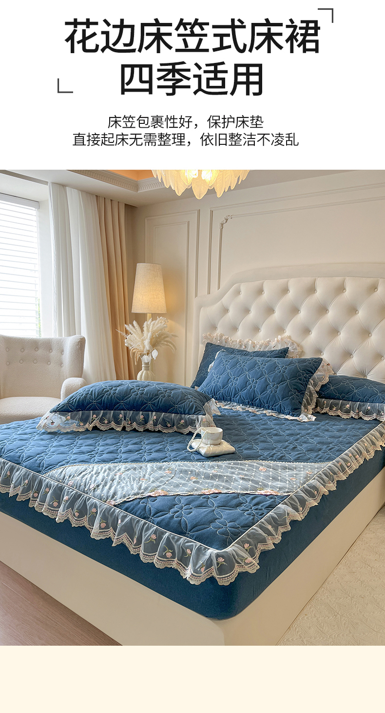 商品名称:(总)网红馆(ck家纺) 2026新款色织蕾丝边床裙款床笠