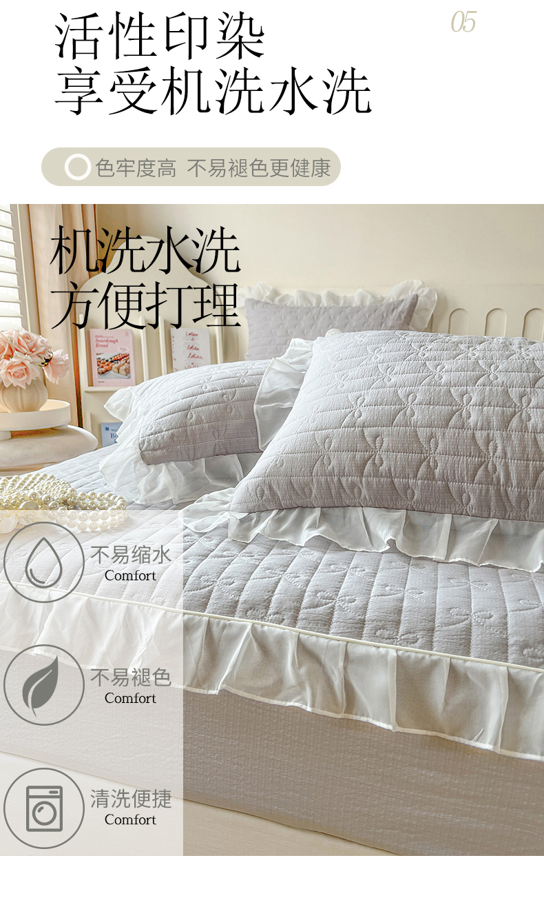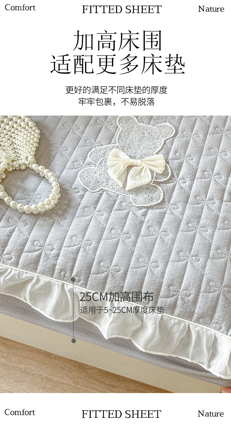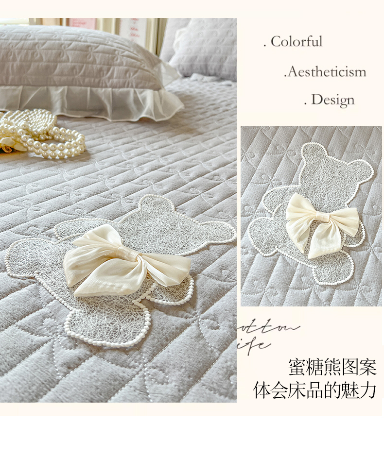 网红馆(ck家纺) 2026新款优舒棉花边床裙床笠--蜜糖熊 蜜糖熊-灰