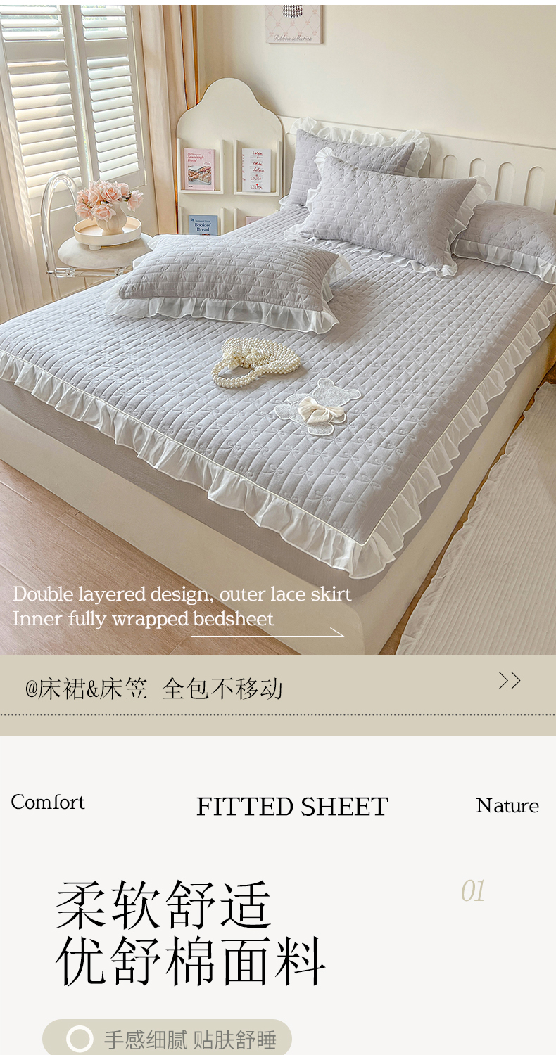 当前位置: 91家纺网 > 商品网购 > 床上用品 > 床笠 > 网红馆(ck家纺) 2026新款优舒棉花边床裙床笠--蜜糖熊 蜜糖熊-灰