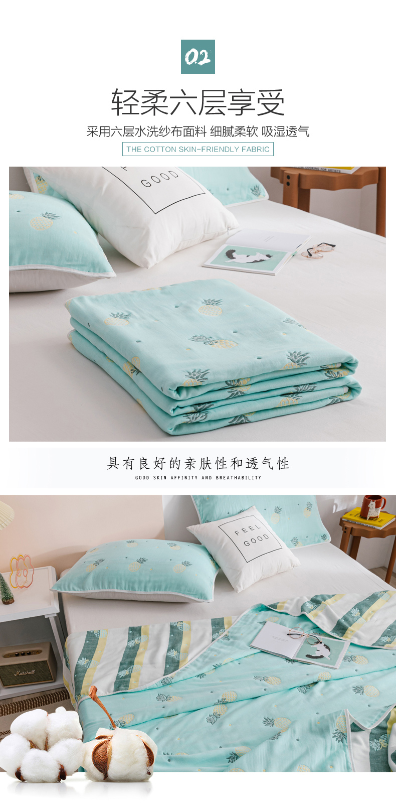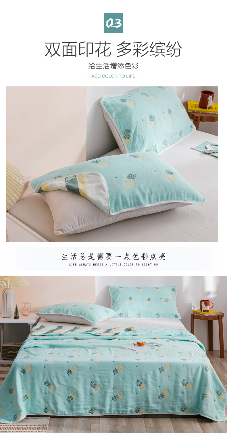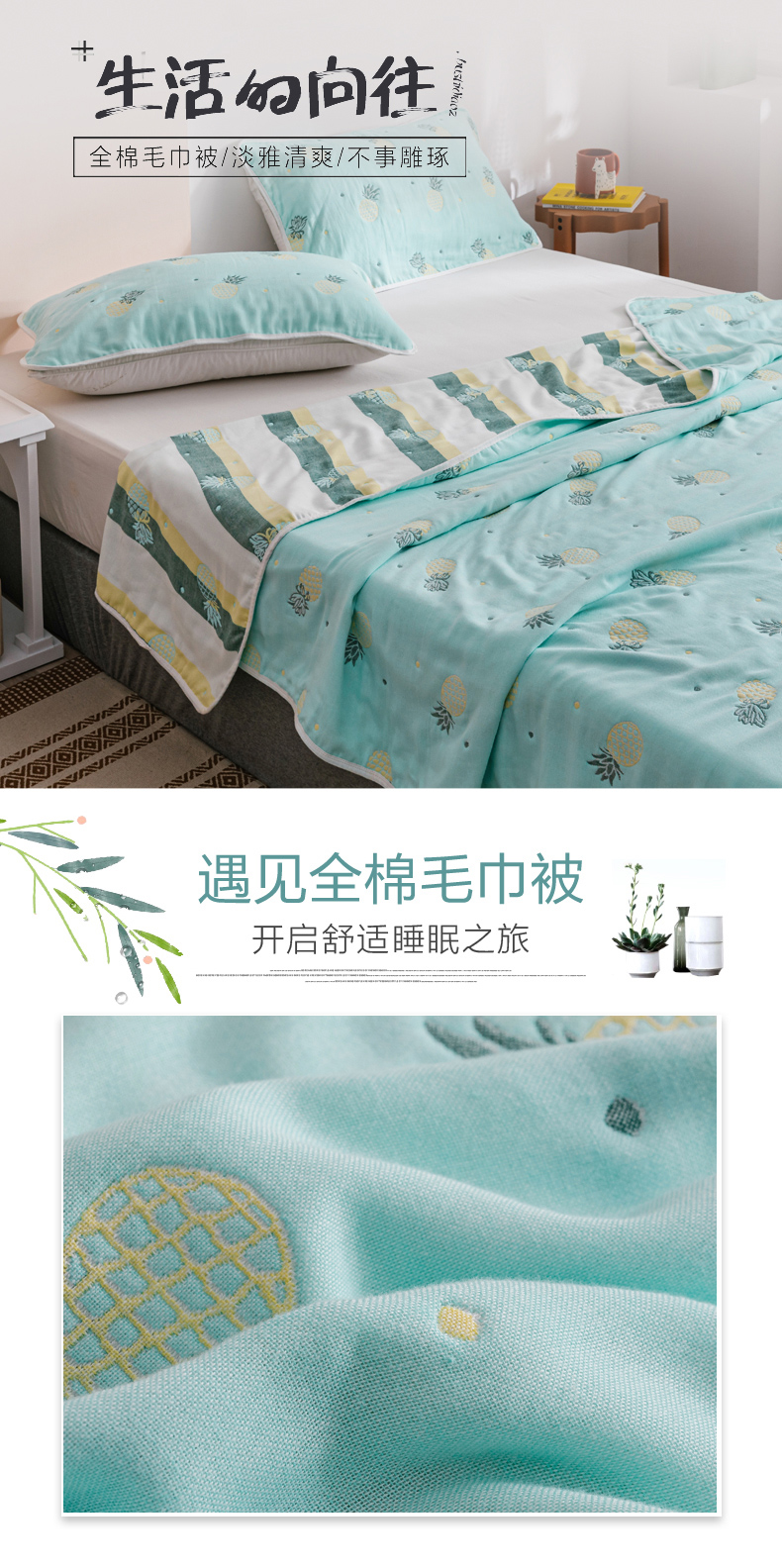 朴尔家纺-毛巾被 2026春夏新款六层全棉纯棉纱布毛巾被夏被夏凉被空调被 清新菠萝-兰
