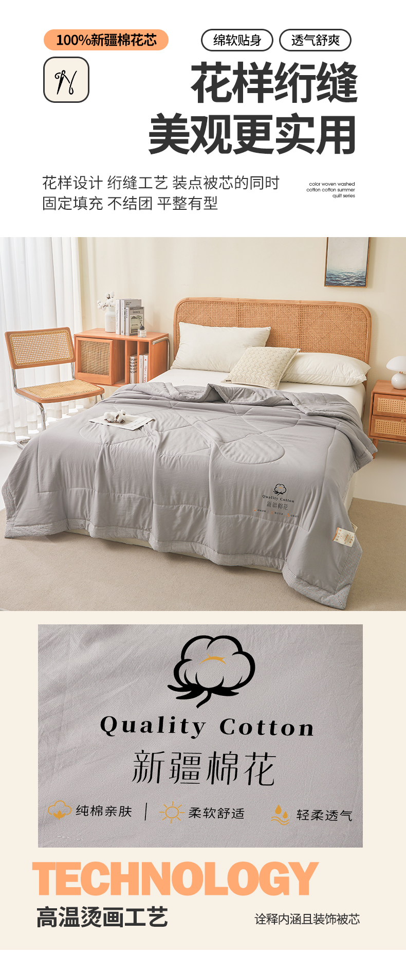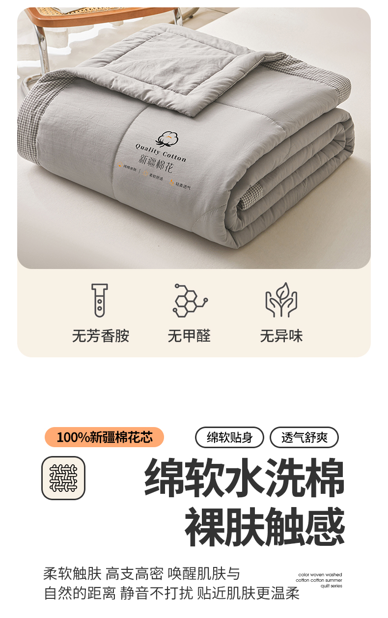 魅图家纺 2026新款新疆棉花夏被被子被芯新疆棉 星灰【提供买家秀】,新疆棉 星灰