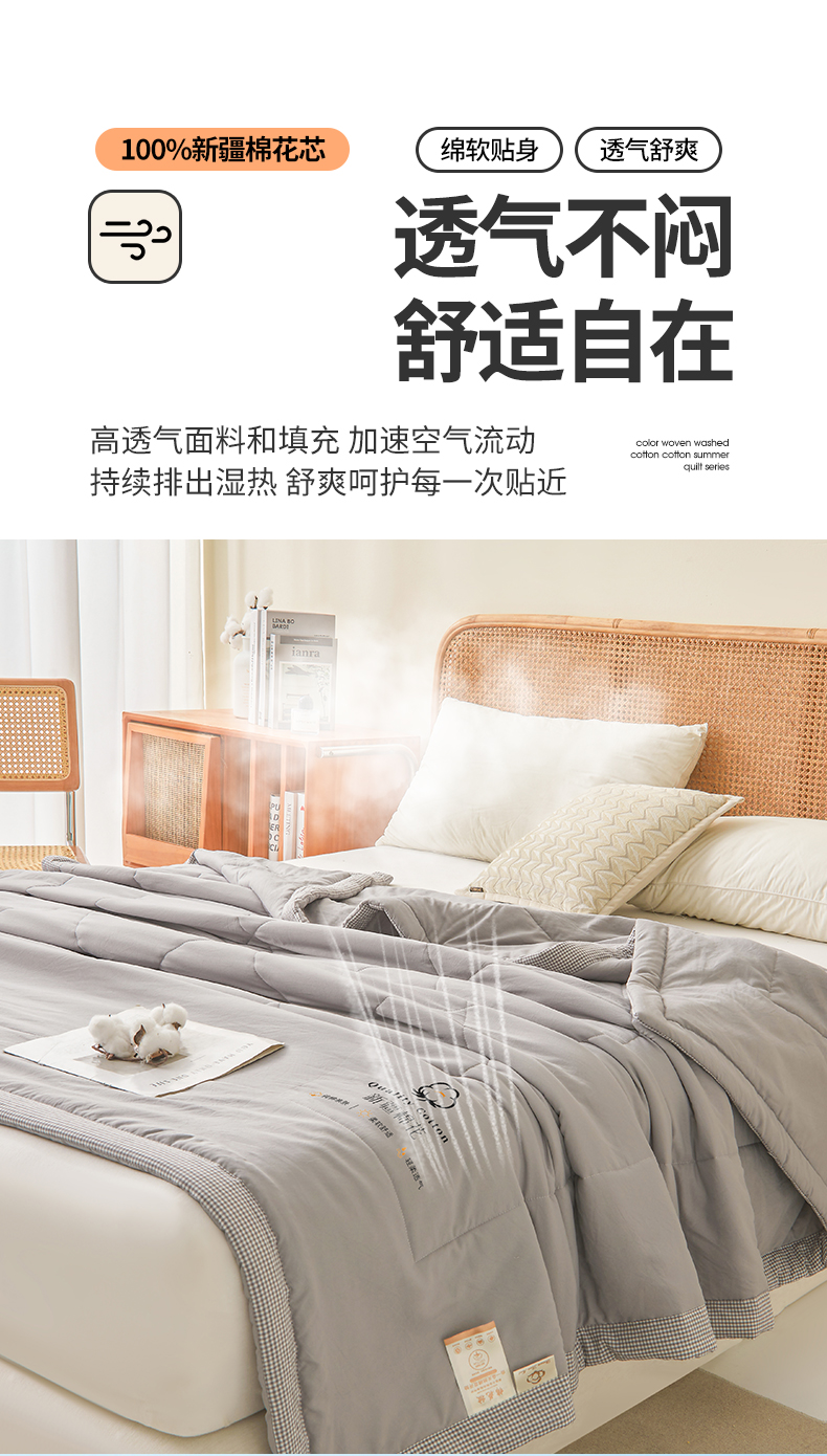 商品名称:魅图家纺 2026新款新疆棉花夏被被子被芯新疆棉 星灰【提供买家秀】