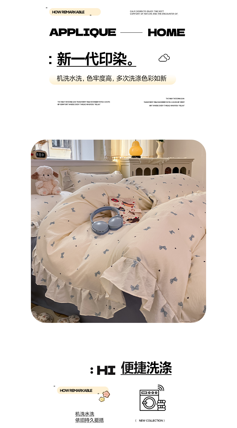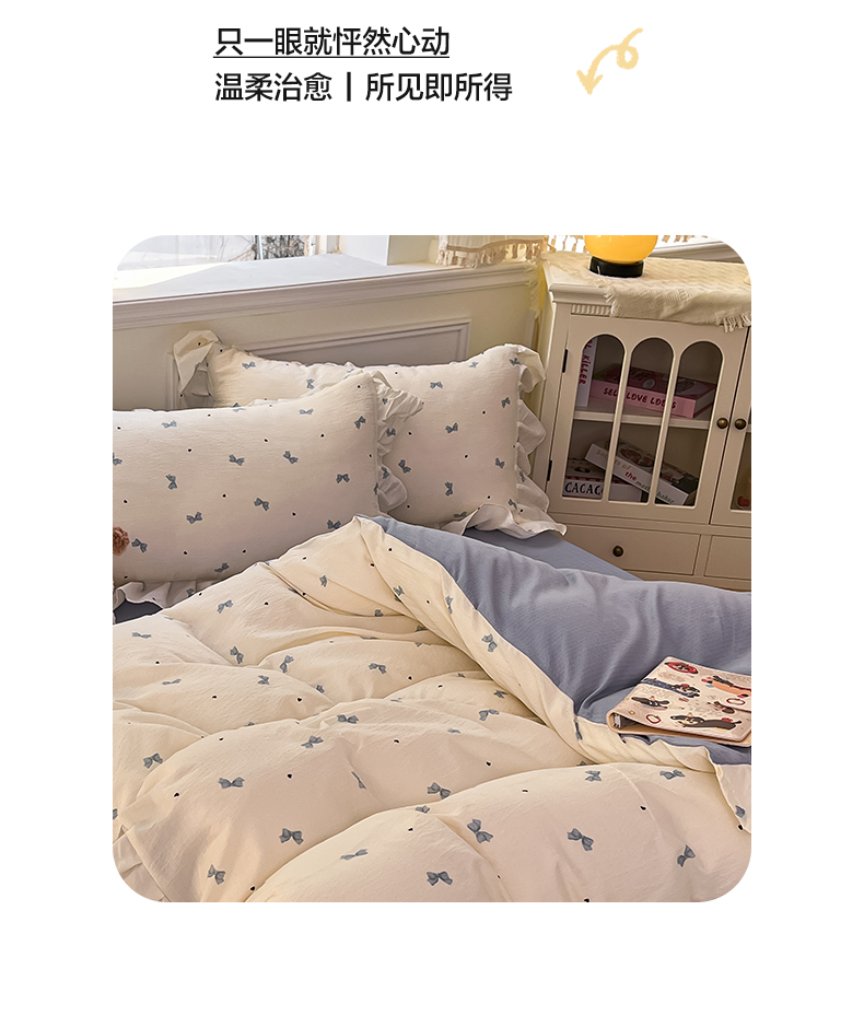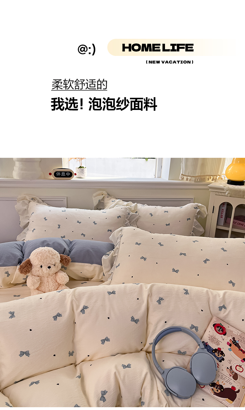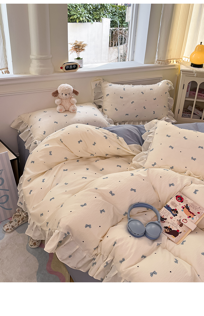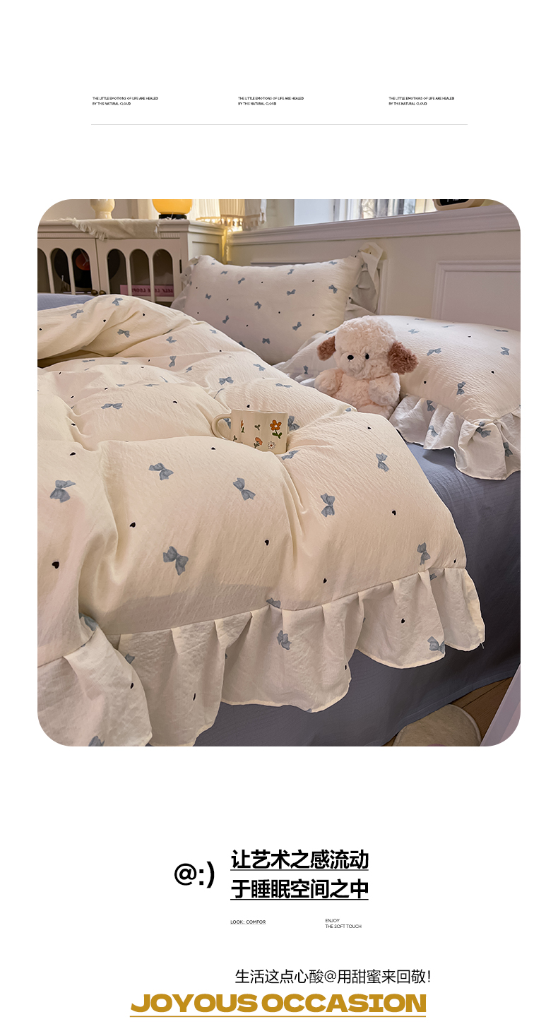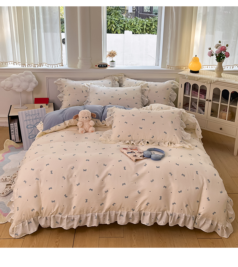 (总)摩妮卡 2026新款泡泡纱韩版印花花边四件套