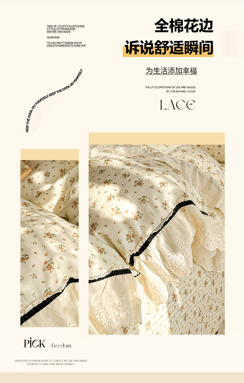 (总)美梦家纺 2026新款高克重全棉花边云感棉床盖四件套,希雅莉·米,雅格·粉,樱桃蜜·咖,尤丽叶·咖,紫藤碎花·咖,莓莓素语·粉,暖小象·兰,浅叶·米,希雅莉·灰
