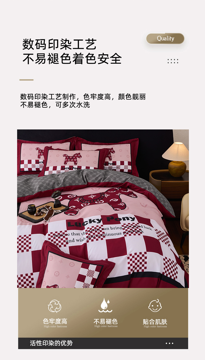 当前位置: 91家纺网 > 商品网购 > 床品套件 > 四件套 > 普通磨毛四件套 > 宝薇 2026新款潮牌轻奢风加厚斜纹磨毛大版四件套 马上好运