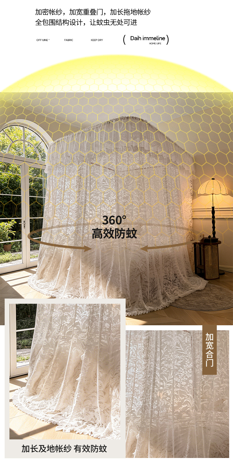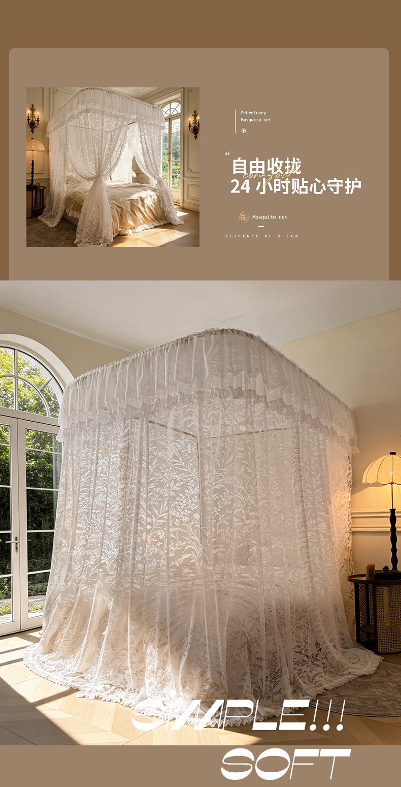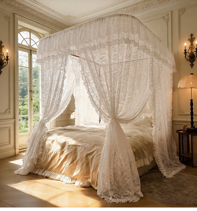 (总)海虹蚊帐 2025新款2503款一体防尘顶落地宫廷蚊帐,白色,米黄,浅蓝,玉色