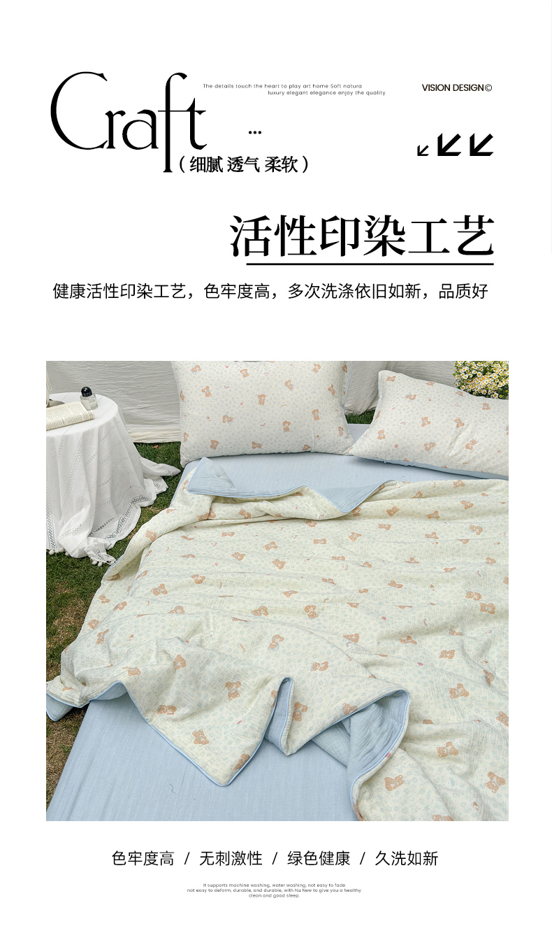 • 91家纺网 家纺一手货源 找家纺 木楌家居 2026年新款全棉皱皱纱夏被夏凉被空调被夏被四件套 乔木