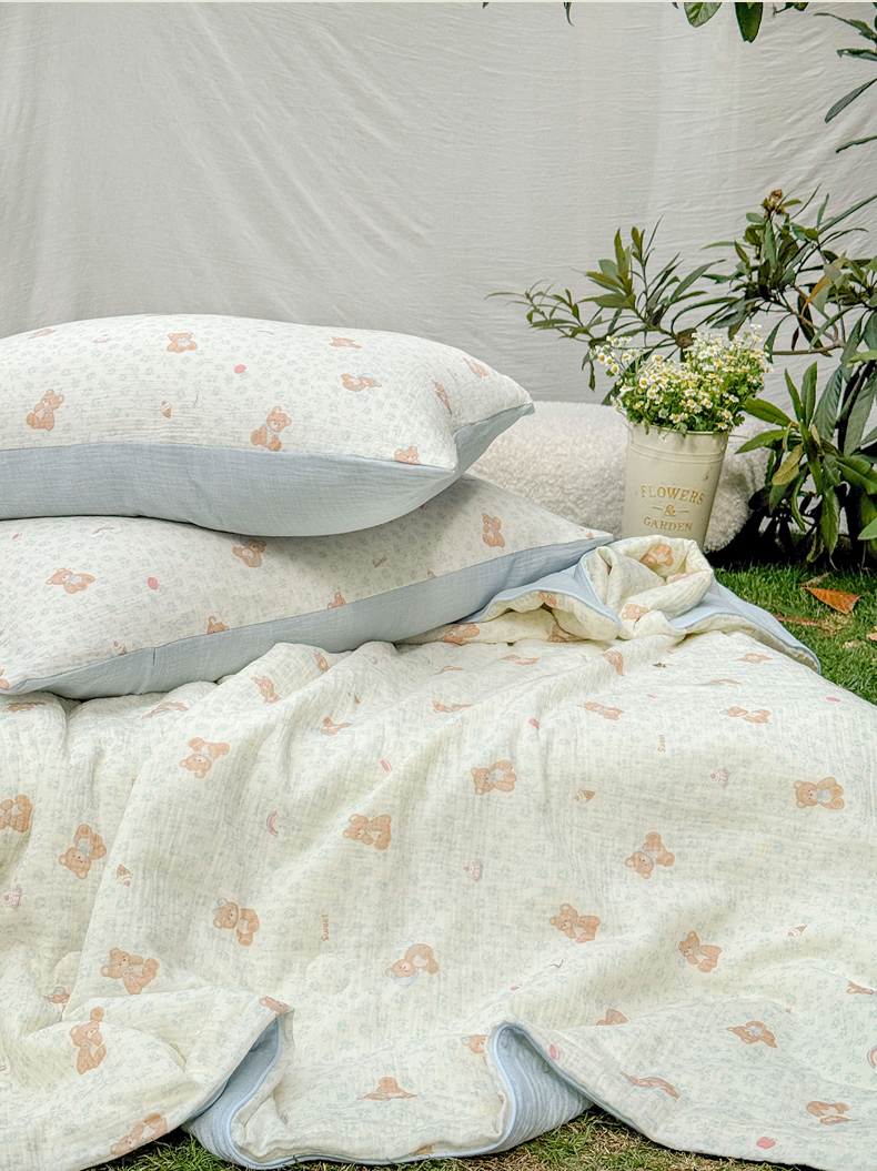 (总)木楌家居 2026新款全棉纱布云感冰冰被床盖四件套系列,樱桃狗,粉黛,兰颜,七彩爱心,时光里,甜心萝卜,小仓兰,小汽车,小星星,阳光小马,樱桃熊,云瑾