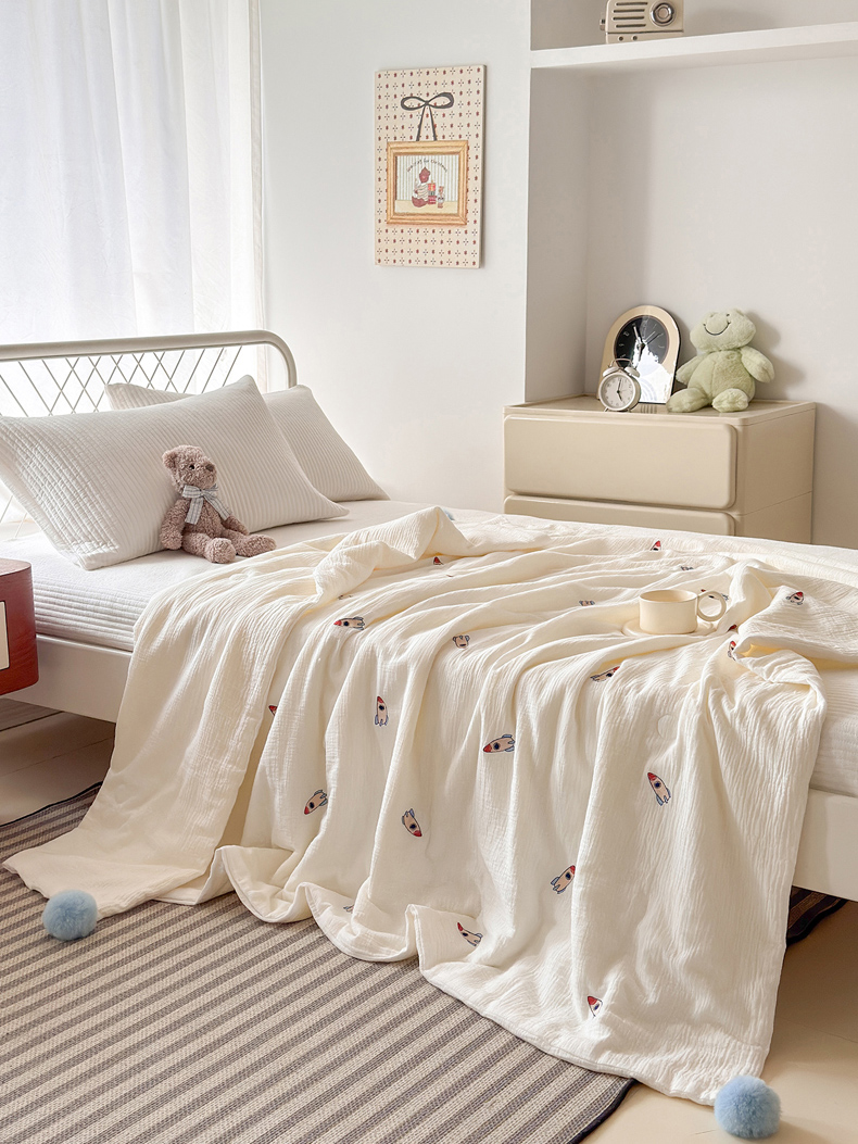 • 91家纺网 家纺一手货源 找家纺 木楌家居 2026新款全棉皱皱纱儿童款夏被床盖四件套 小火箭