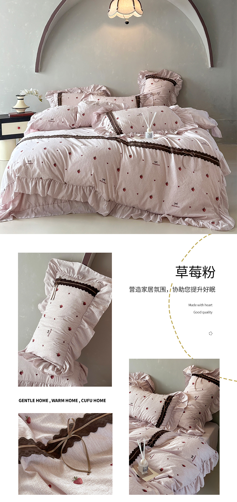 (总)迷尚家居 2026新款提花色织麻花边四件套,草莓粉,蝶恋花,费尔岛灰,好运结咖,红樱桃茶,佳人紫,可可蓝,素锦豆沙,素锦灰,素锦蓝,小兰花绿,星星狗绿,薰衣草紫,野餐,云溪粉,云溪蓝