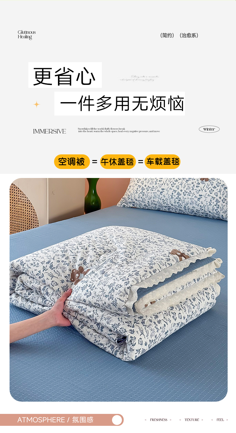 (总)艺菲阁家纺 2025新款花边款小碎花A类云感双层纱夏被,春风十里,海像深林,偏偏宠爱,倾心-米,人间草木,森田野园,相思-粉,相思-蓝