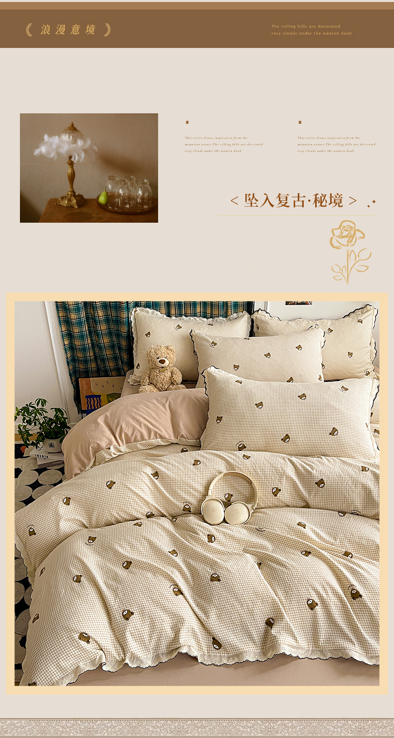 当前位置: 91家纺网 > 商品网购 > 床品套件 > 四件套 > 水洗棉四件套 > 金梦拉家纺 2026春夏新款古法水洗棉花边系列四件套 花边-锦瑟
