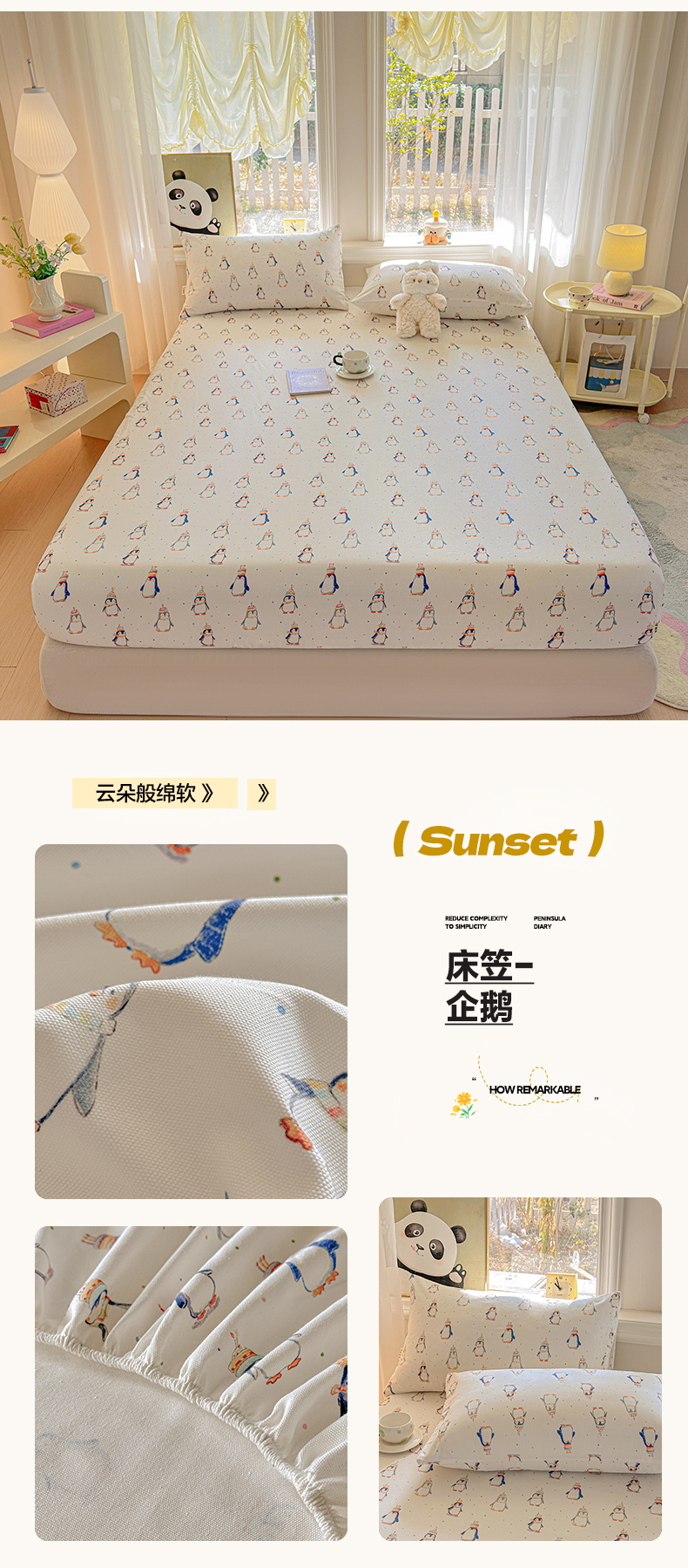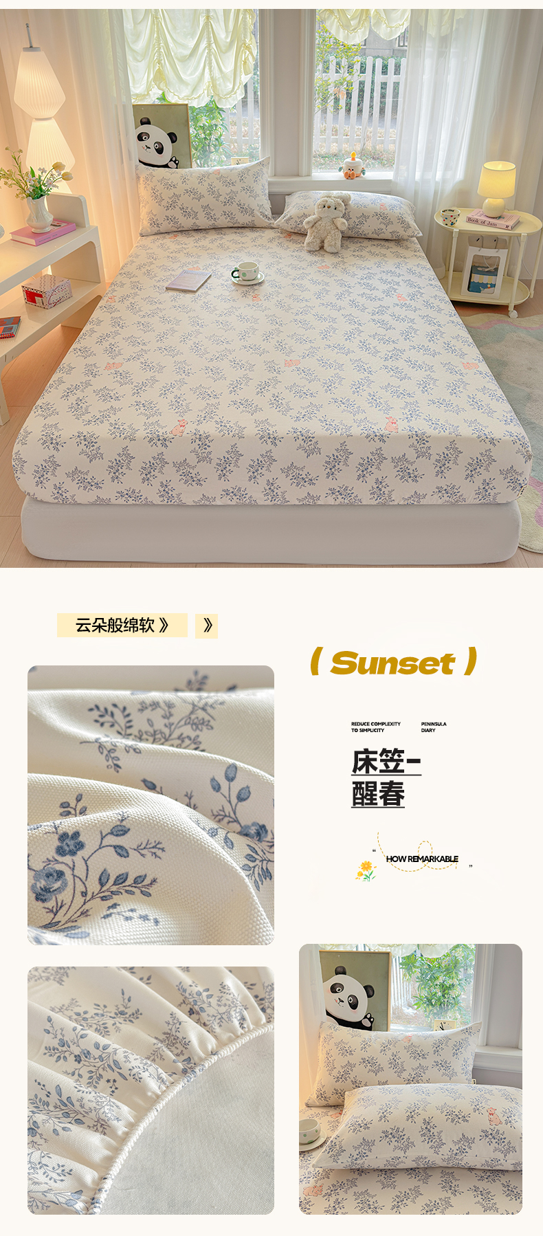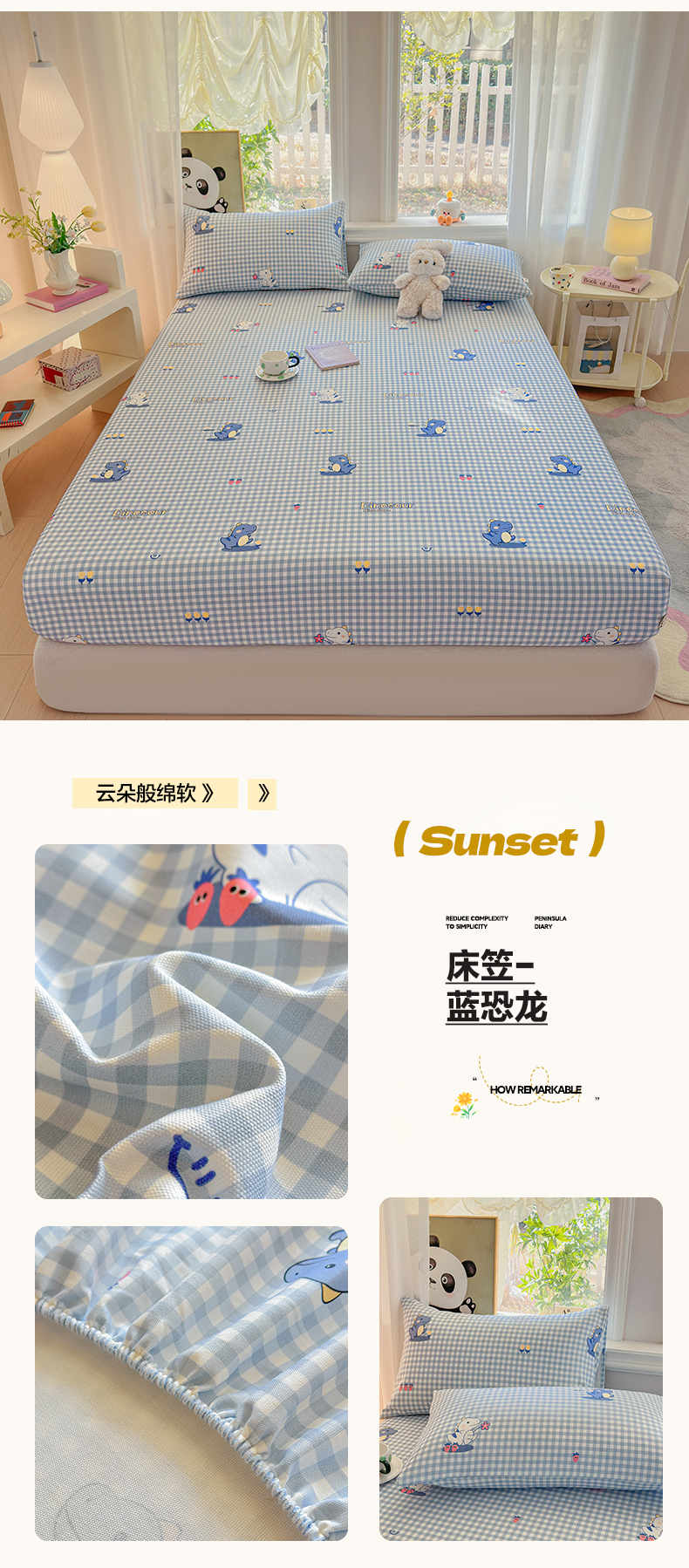 (总)莱登卡奴 2026新款A类100%全棉纯棉老粗布单床笠系列,艾伦,冰淇淋,花田初夏蓝,腊肠犬,蓝恐龙,菱格米,莫奈灰,奶酪,泡芙兰,企鹅,旺仔腊肠狗,醒春,丫丫,云初,枝叶,组合图 仅供参考