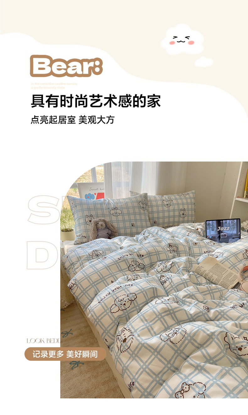 (总)六巷胡同 2025新款INS卡通童趣混搭风全棉四件套第二系,混搭-蛋糕围兜熊,混搭-奶油酣睡熊,混搭-奈斯羞羞狗,混搭-小蓝格甜点,混搭-雪糕哈皮熊,混搭-月亮睡睡熊