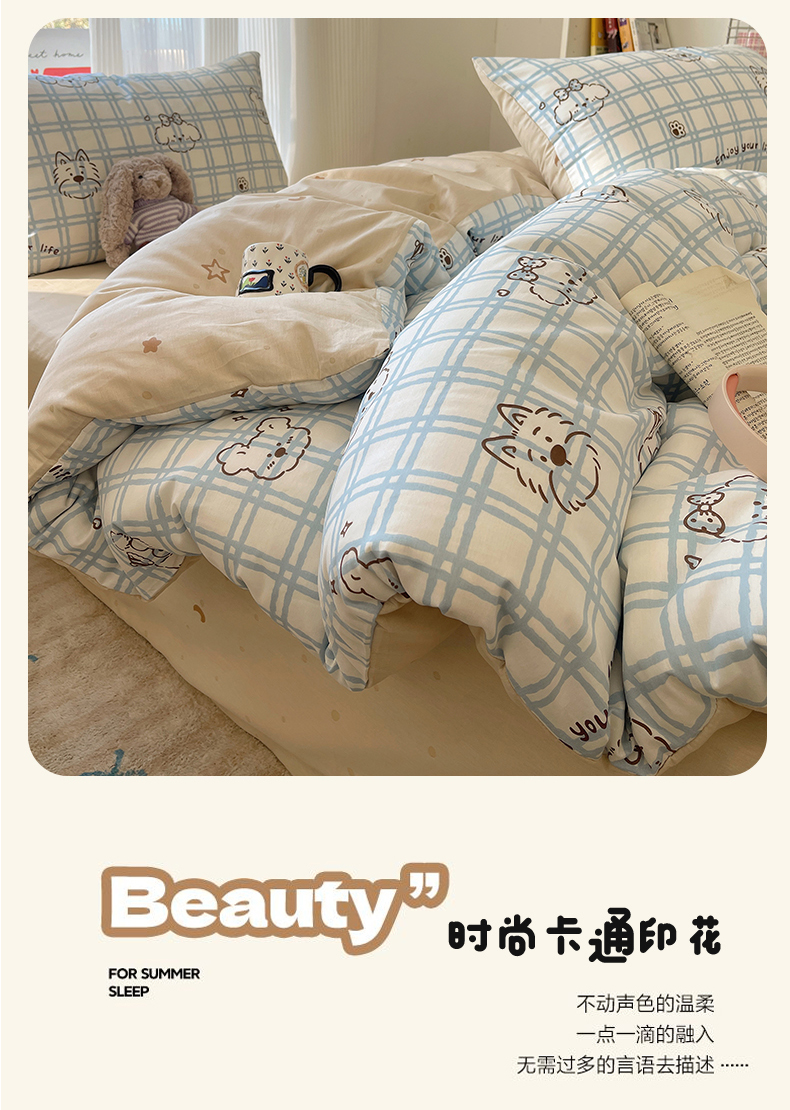 商品名称:六巷胡同 2026新款INS减龄可爱风卡通全棉四件套(第二系列) 蓝格美拉犬