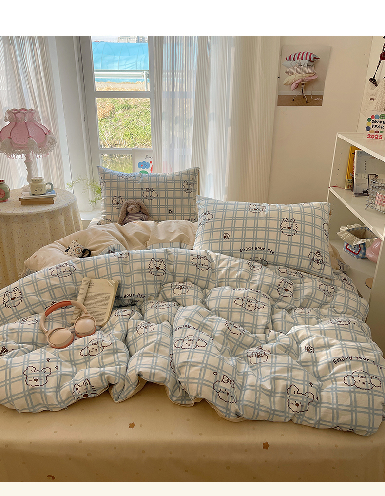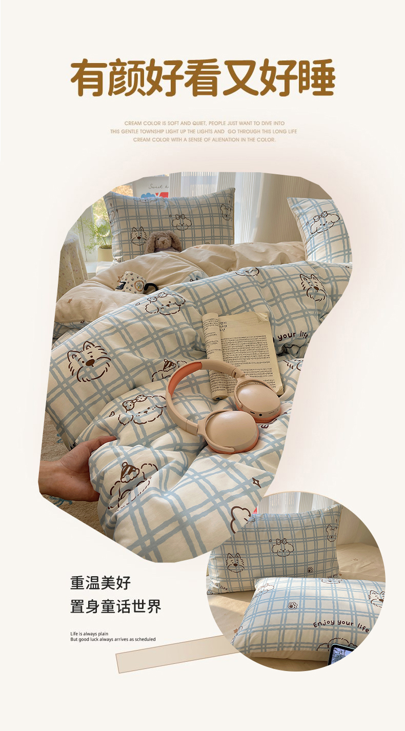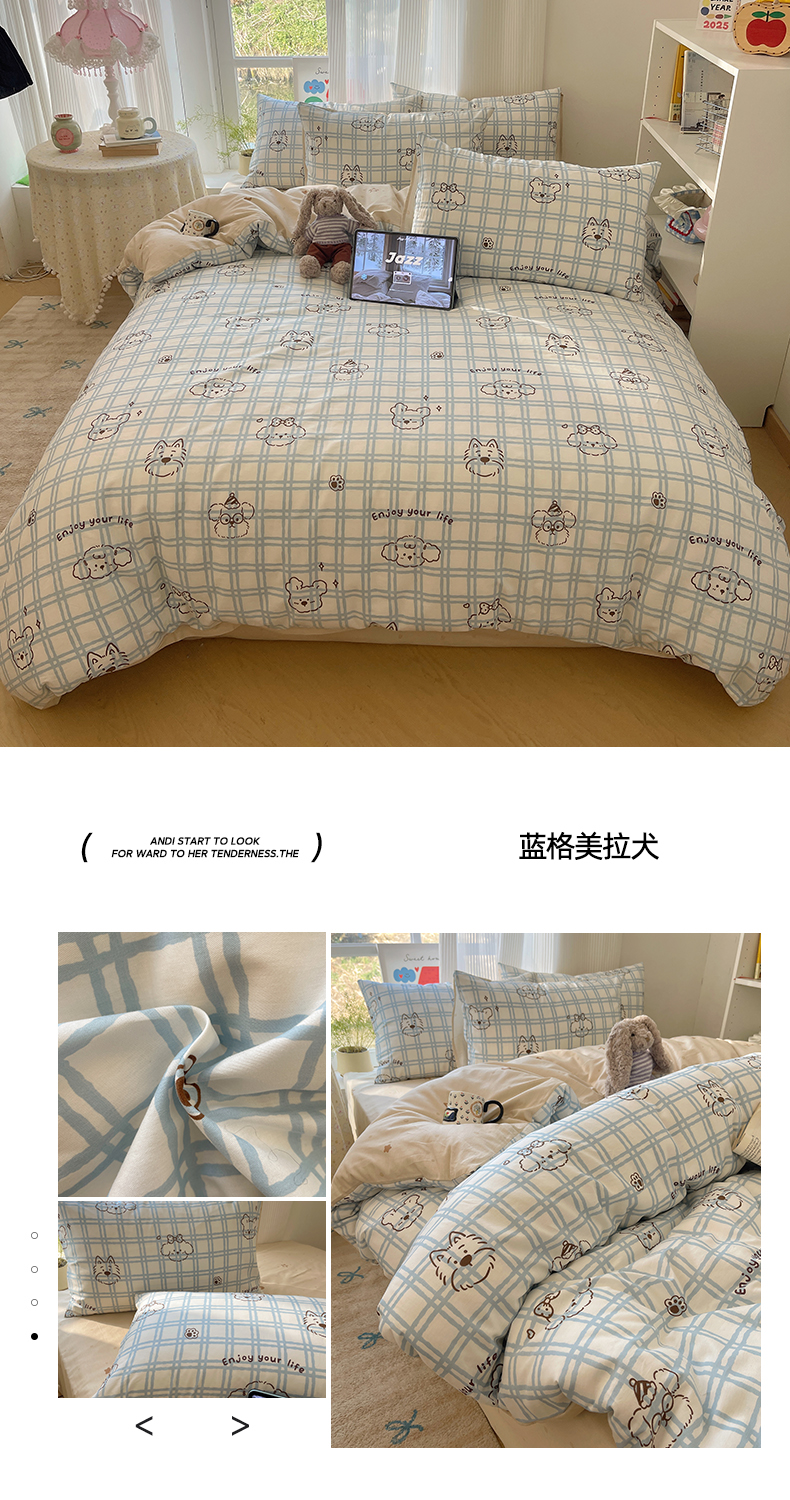 六巷胡同 2026新款INS减龄可爱风卡通全棉四件套(第二系列) 蓝格美拉犬
