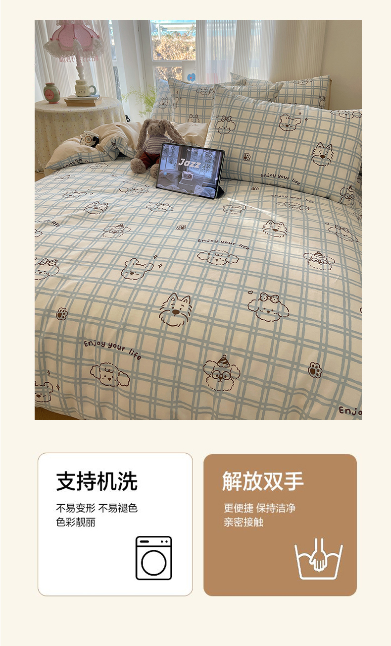 (总)六巷胡同 2025新款 INS减龄可爱风卡通全棉四件套第五系(森林音乐会系列),波点嘟嘟猫,点点面包犬,调皮蔷薇狗,哈喽泡芙猫,蓝格插画犬,森林音乐会