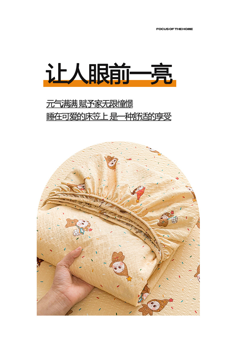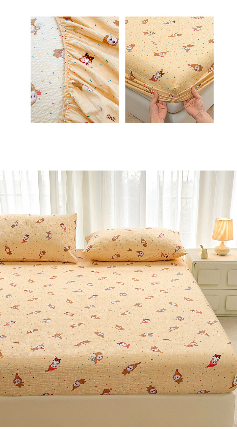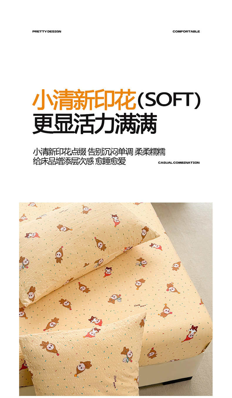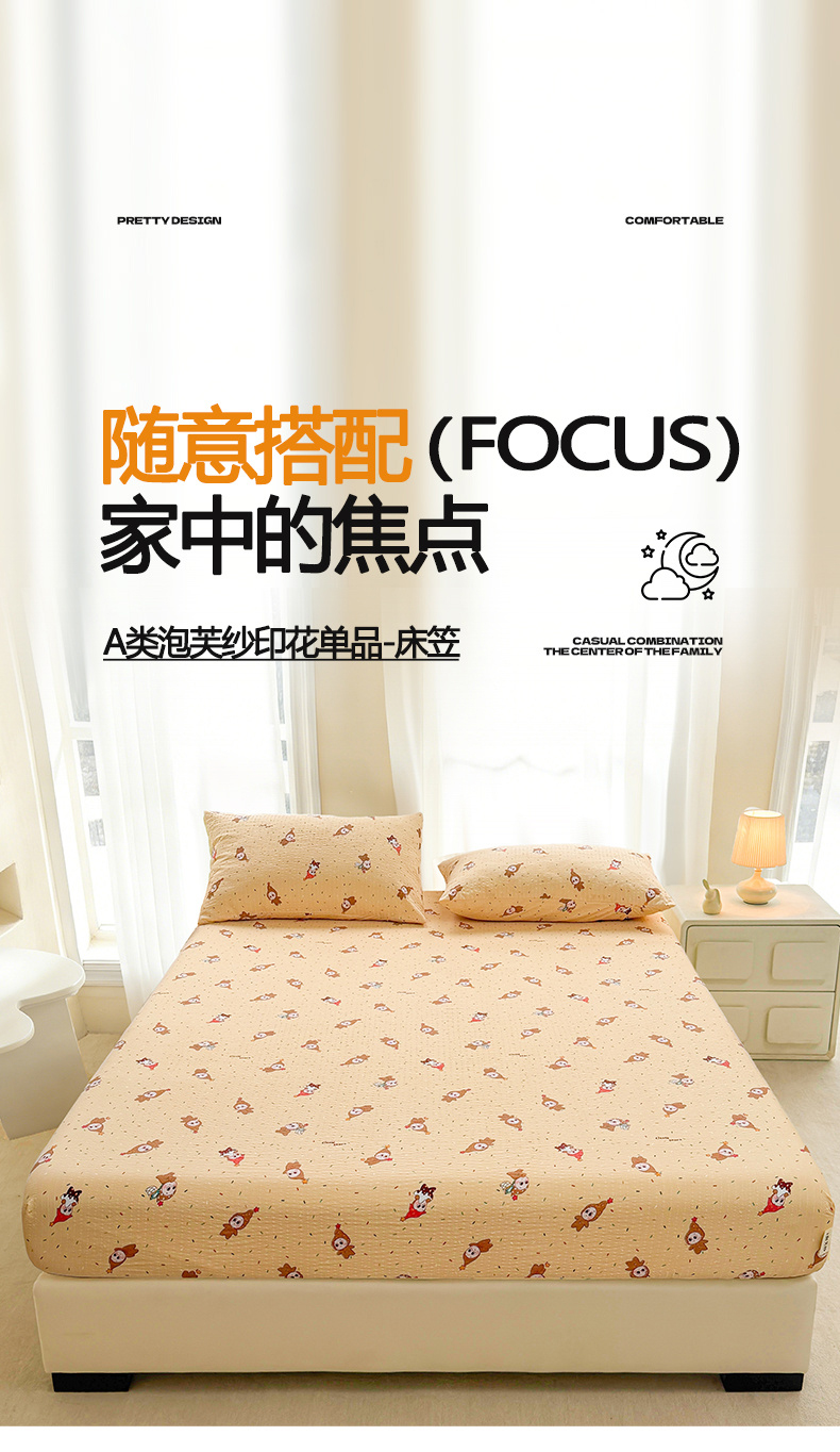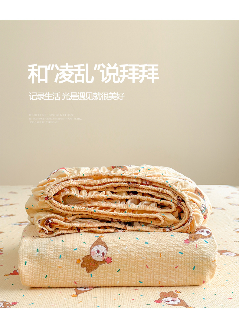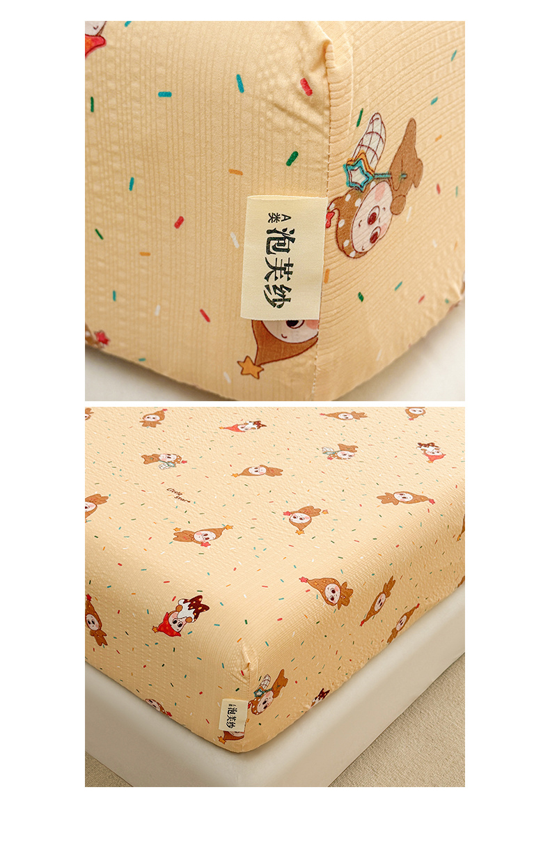 贝扬思家纺 2026新款高克重泡芙纱印花款单床笠床笠单件-浅糯 CL浅糯-星星糖豆