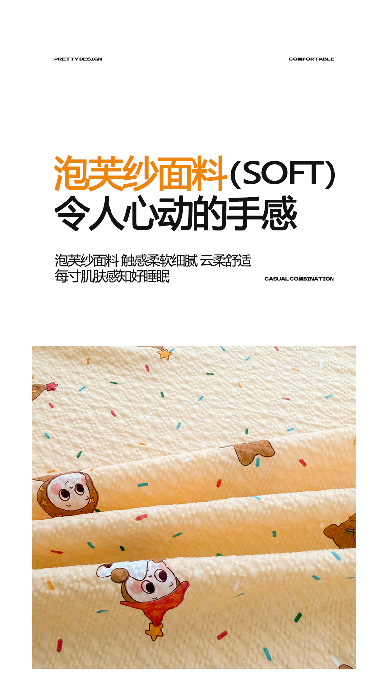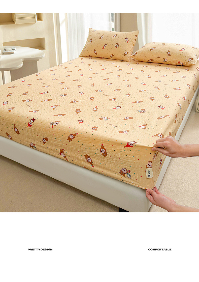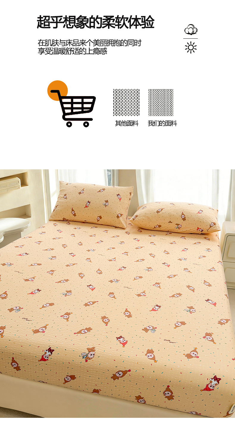 • 91家纺网 家纺一手货源 找家纺 贝扬思家纺 2026新款高克重泡芙纱印花款单床笠床笠单件-浅糯 CL浅糯-星星糖豆