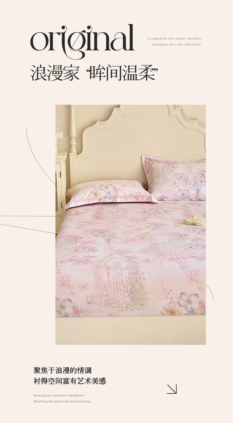 当前位置: 91家纺网 > 商品网购 > 床上用品 > 床笠 > 宝齐莱家纺 2026新款全棉纯棉活性印花单床笠床笠单件 浪漫花季