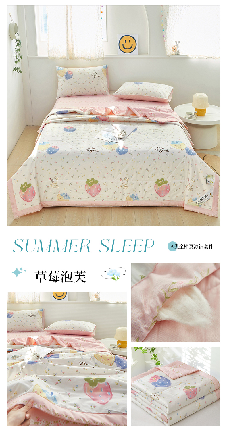 当前位置: 91家纺网 > 商品网购 > 被子 > 夏被 > 黛妮雅 2026新款里外全棉印花棉花被纯棉夏被夏凉被空调被 夏被四件套草莓泡芙