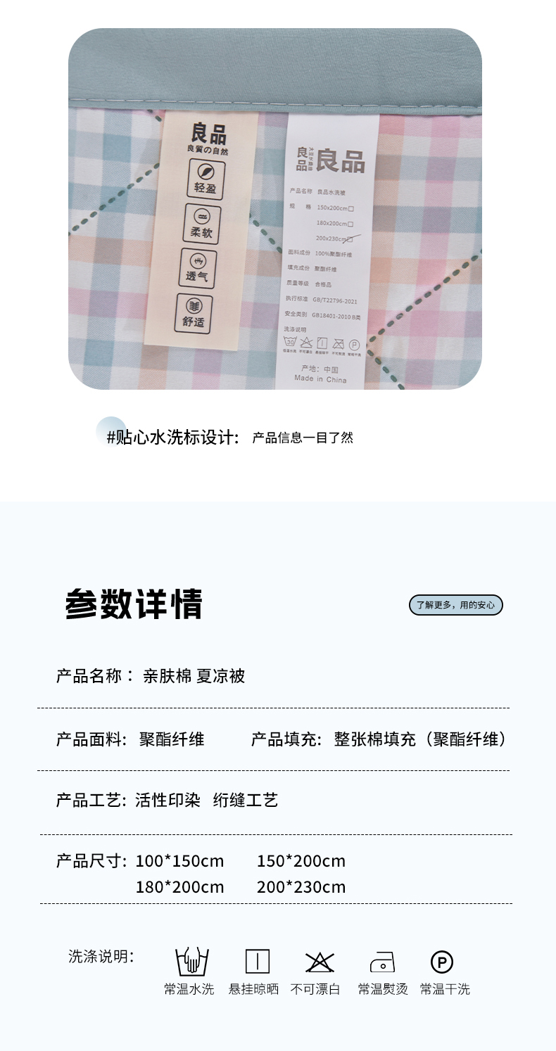 商品名称:培童 2025水洗棉夏被夏凉被空调被超声波压花礼品直播引流爆款 七彩格