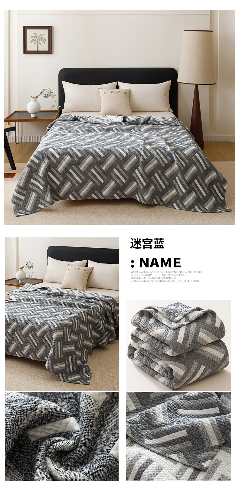 (总)悦然毛巾被 2026新款外贸全棉三层纱布毛巾被盖毯,爱心拼布灰,爱心拼布咖,爱心拼布蓝,空灵羽灰,空灵羽咖,空灵羽蓝,迷宫格咖,迷宫灰,迷宫蓝,组合
