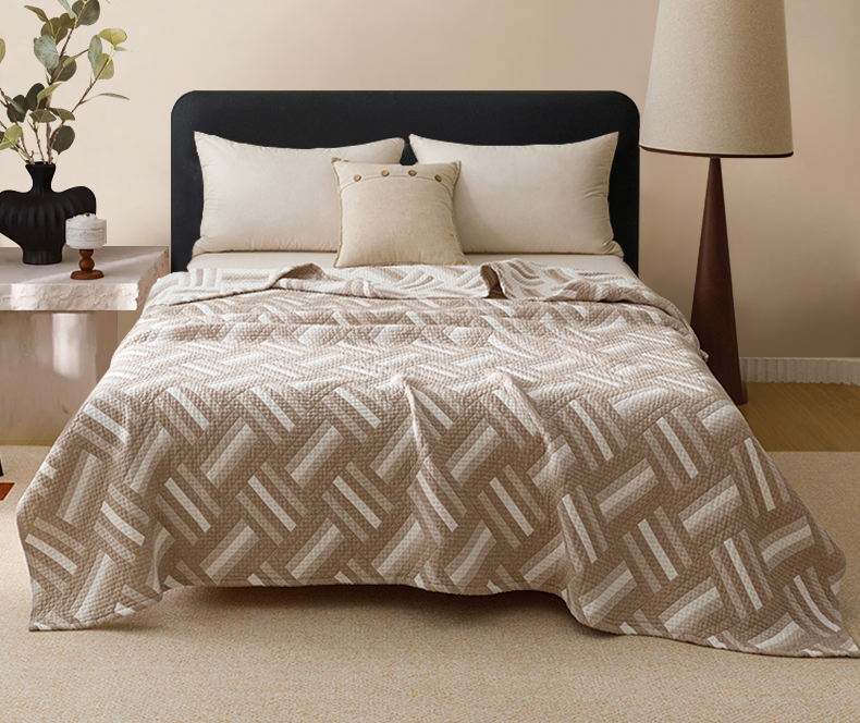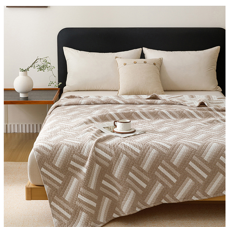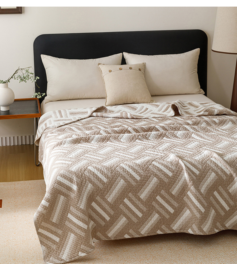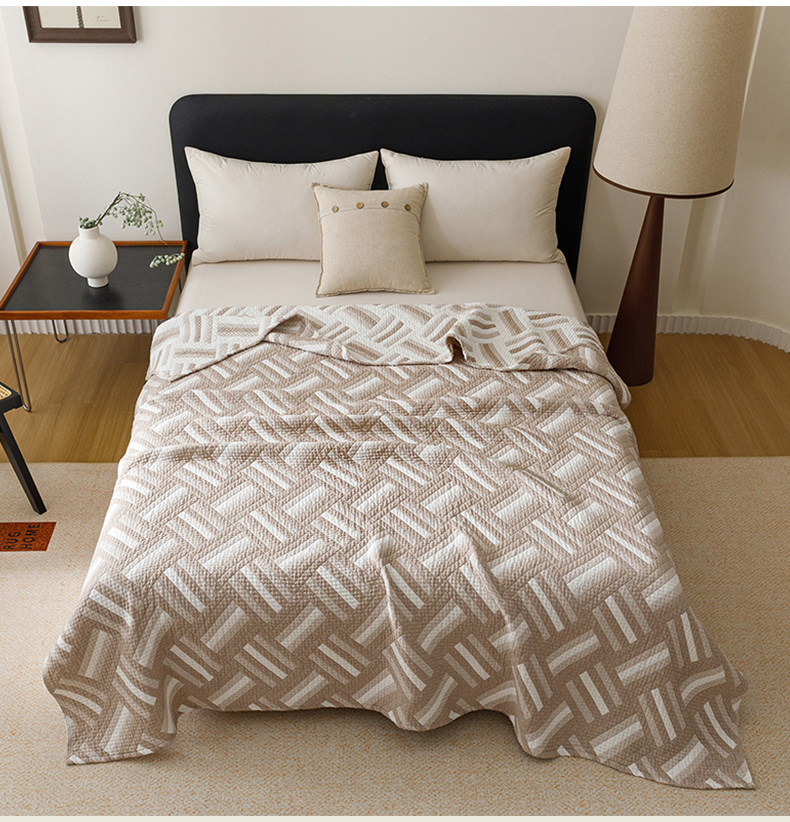 悦然毛巾被 2026新款外贸全棉三层纱布毛巾被盖毯 迷宫格咖