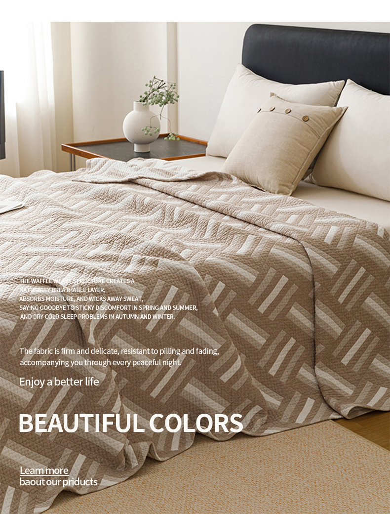 (总)悦然毛巾被 2026新款华夫格全棉纱布毛巾被夏凉被空调被,静居织语豆纱,静居织语咖啡,静居织语浅灰,静居织语浅绿,静居织语杏白