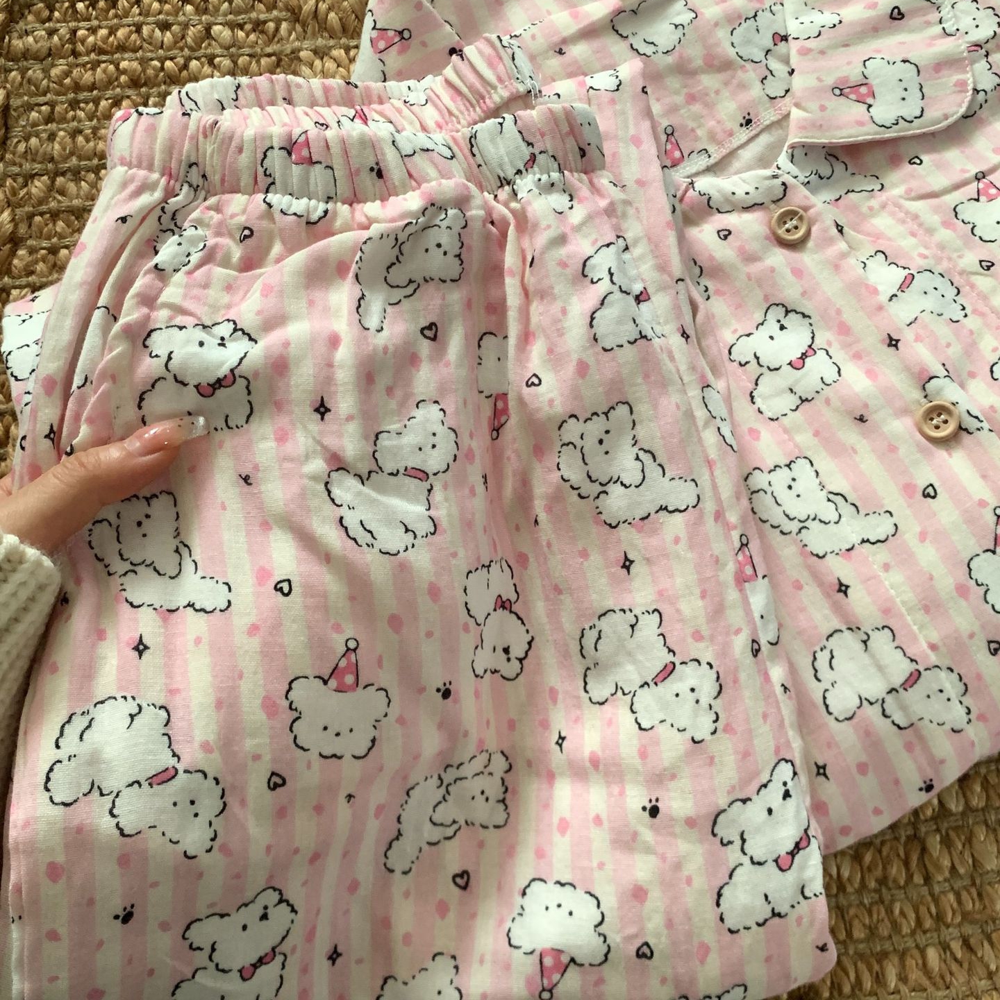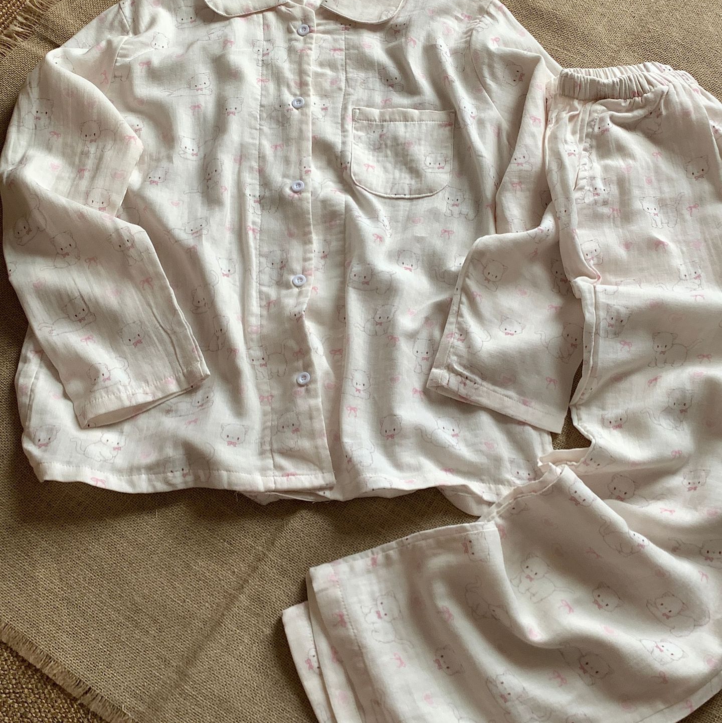 妍景家居生活馆 2026新款全棉纯棉双层纱睡衣 蓝色雨伞小猫