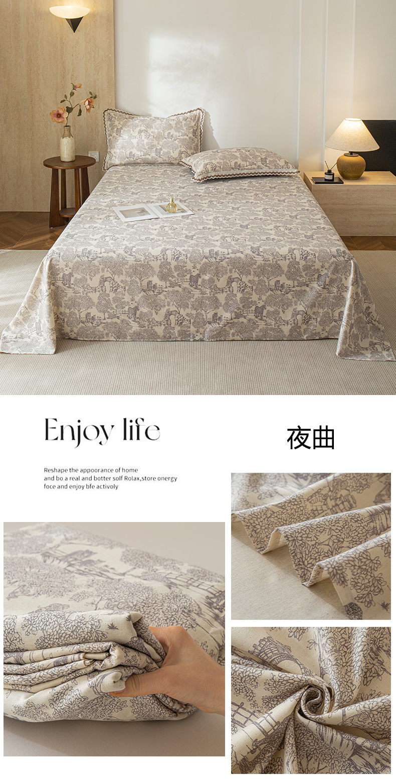 (总)优米家纺 2026新款棉麻印花床单单件床单单品,云思木想,暮色织语,精灵仙子,光年之外,七彩童话,晨雾柔纱,狗狗乐园,夜曲,热带汐语,以梦为马,木马乐园,林语花眠,香韵满园,花熙,月光纱,蔓叶森语,杏仁咖,玉颜粉,冷雾灰,暮云灰,本色,海滩红,西子绿,组合图仅供参考不可下单