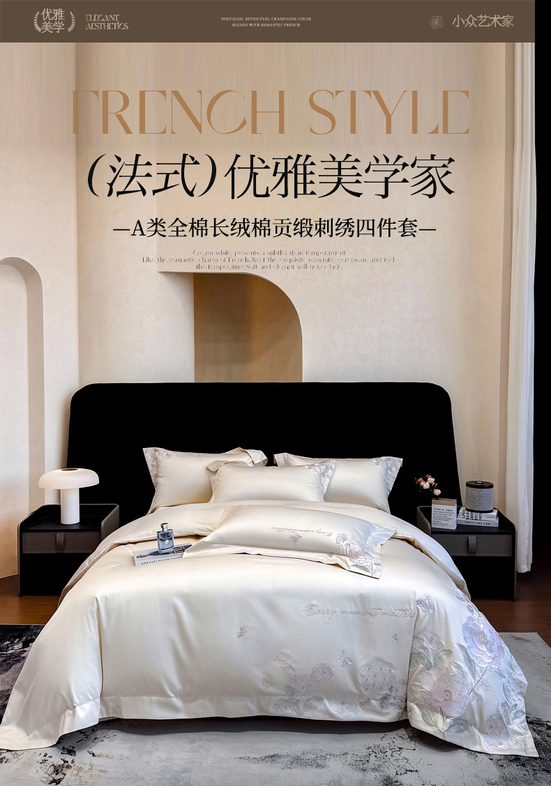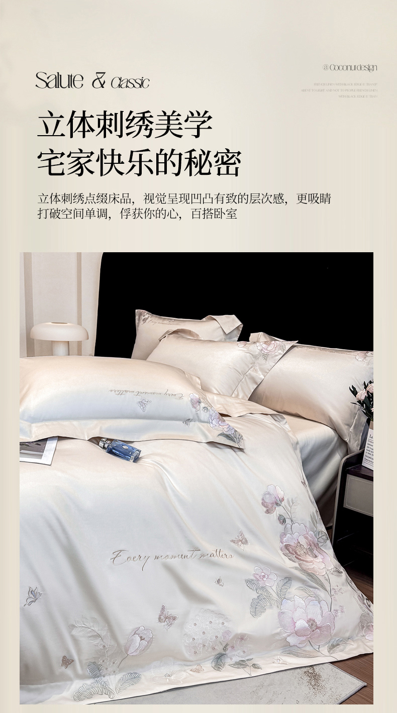(总)星蕴家纺 2026新款双股长绒棉全棉纯棉刺绣四件套-柏林系列,柏林 贵族白,柏林 星空灰,柏林 云山蓝,柏林 香槟金,柏林 可可粉