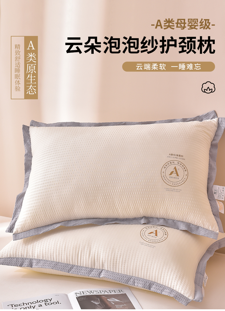 商品名称:小桃姐家纺 2025新款柔软透气云朵泡泡纱枕头枕芯 云朵泡泡纱枕-米白色-低枕