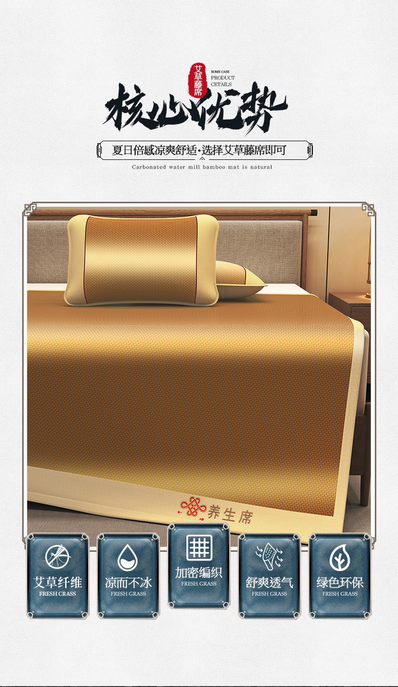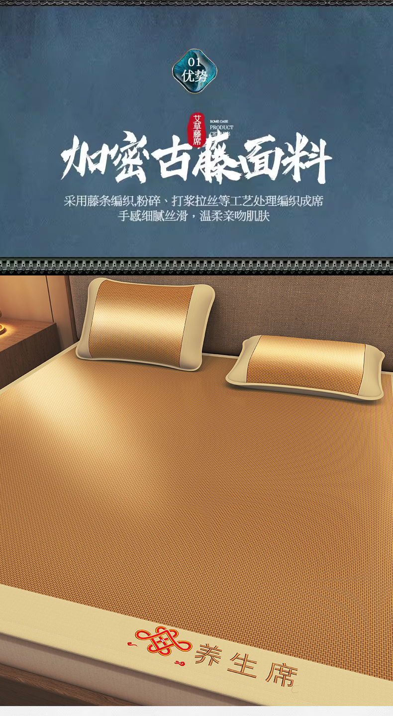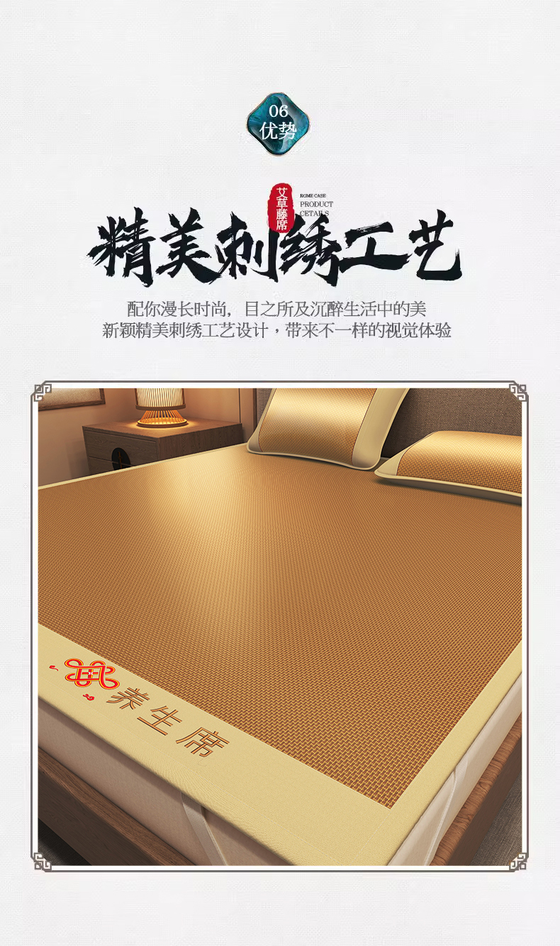 商品名称:小桃姐家纺 2025新款舒适艾草刺绣藤席养身席单面席中国风凉席席子 吉祥结-步步高
