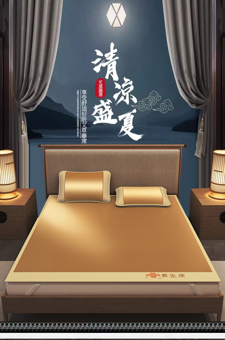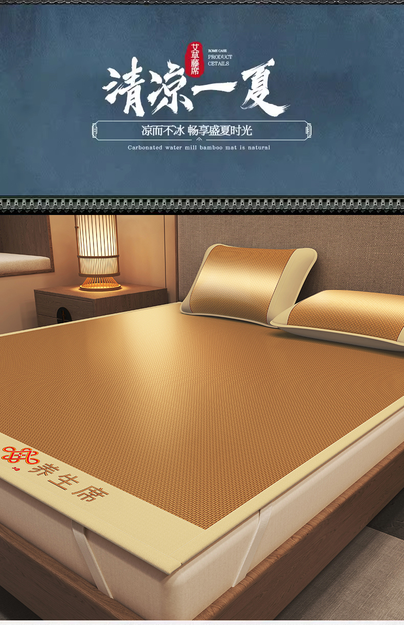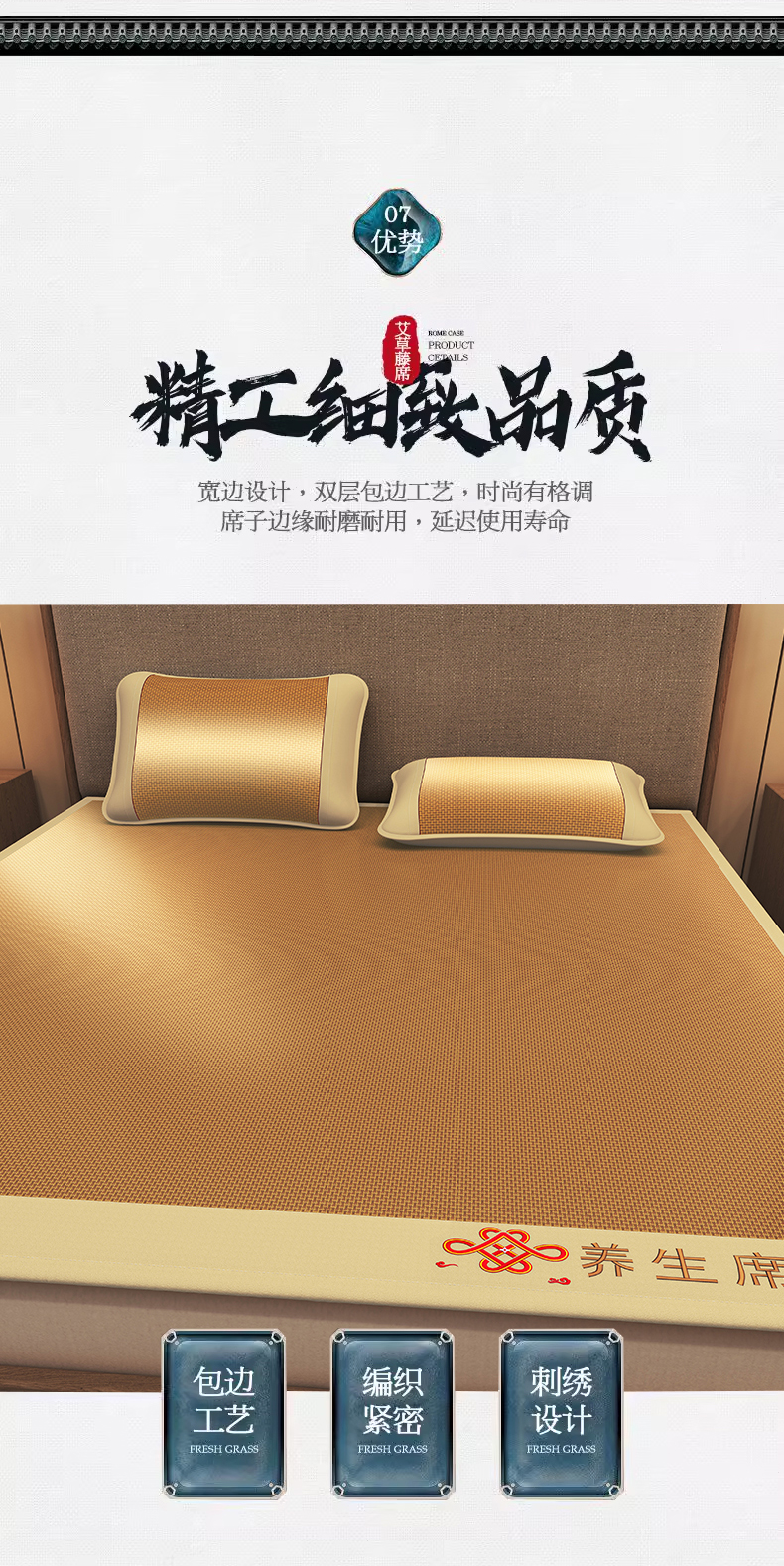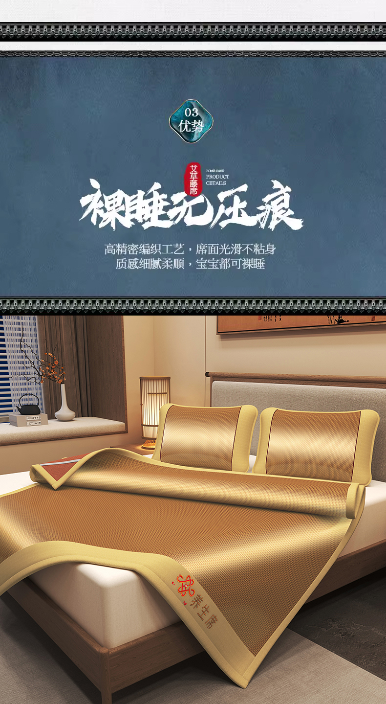 商品名称:小桃姐家纺 2025新款舒适艾草刺绣藤席养身席单面席中国风凉席席子 吉祥结-步步高