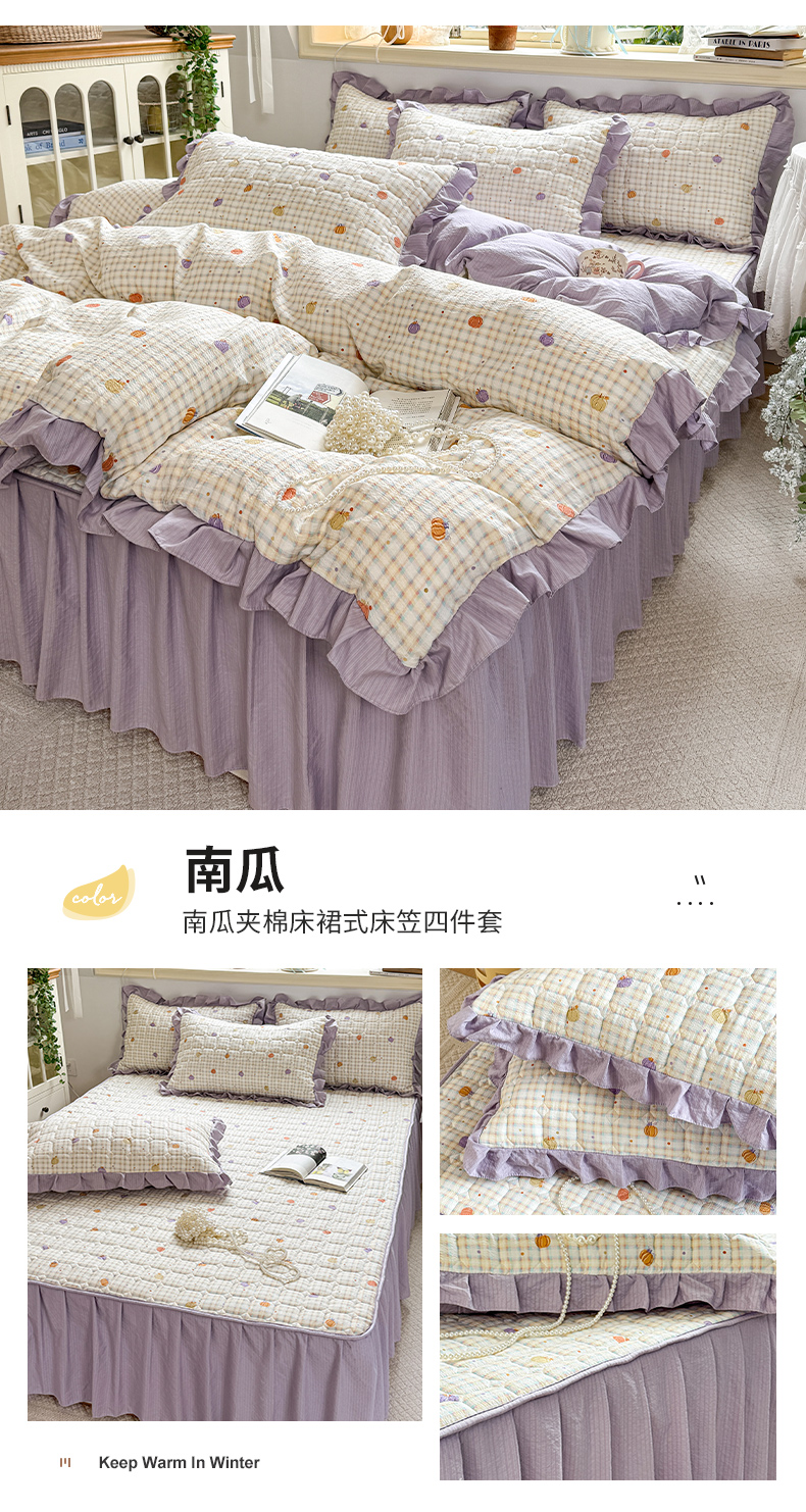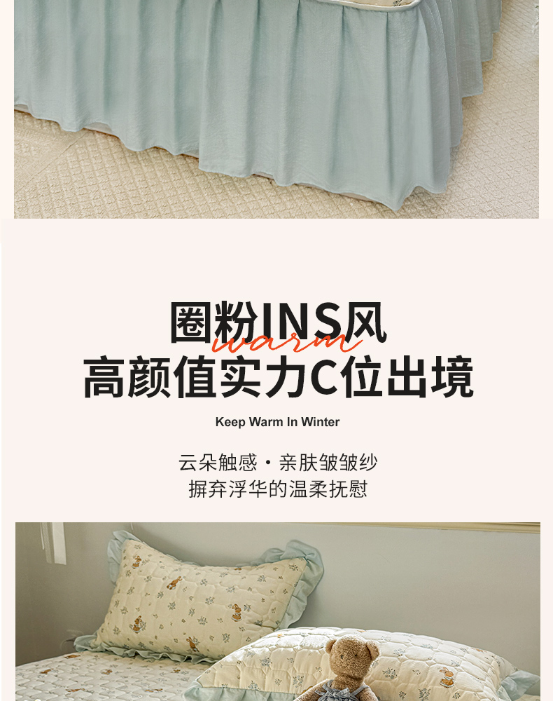 (总)禧缘家纺(原梦想家) 2026新款小清新皱皱纱木棉床裙式床笠印花三件套,彩虹,蝶梦,花田,沐春,南瓜,泡芙,甜筒,童话,兔兔,雾迟,星星,月光